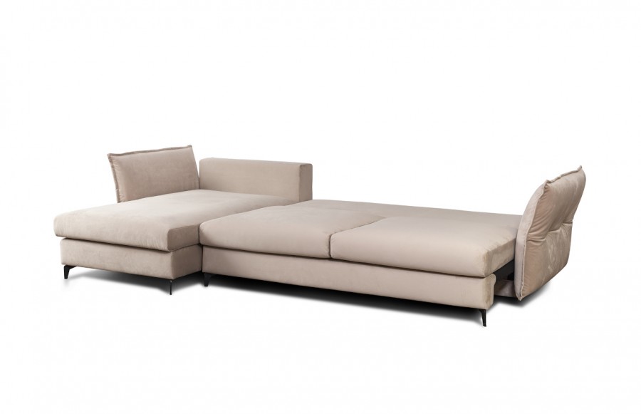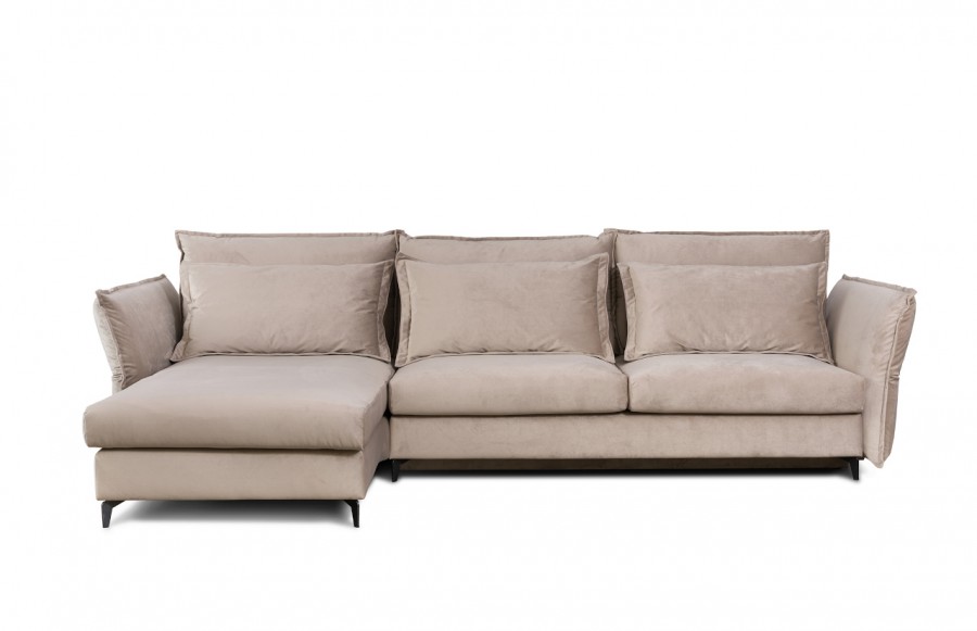 Narożnik CARMEN - to wyjątkowy narożnik, który emanuje urzekającym stylem. Doskonale łączy w sobie elementy stylu glamour z nowoczesnymi wykończeniami, tworząc niepowtarzalny design. Ten model wyróżnia się oryginalną linią, podkreśloną miękkimi poduchami oraz regulowanymi bokami, co czyni go doskonałym wyborem zarówno do nowoczesnych, jak i klasycznych wnętrz. CARMEN to mebel, który zachwyca fantastyczną stylistyką i precyzyjnie wykonanymi detalami, takimi jak falowana lamówka na podłokietnikach i oparciu. Narożnik oferuje miękkie i wygodne siedzisko, które bez trudu pomieści 3 osoby. Siedzisko i oparcie są wypełnione sprężyną i wysokoelastyczną pianką poliuretanową, co zapewnia doskonały komfort wypoczynku. Dodatkowo, siedziska i oparcia doskonale dopasowują się do anatomicznego kształtu ciała, zapewniając wyjątkowy komfort i ergonomię. Narożnik CARMEN ma także praktyczną funkcję spania. Po rozłożeniu oferuje dużą powierzchnię do spania, a także pojemny schowek na pościel. Dostępny jest w kilku kolorach nóżek i oferuje szeroki wybór kolorów tapicerki, dzięki czemu masz możliwość dostosowania go do swoich indywidualnych preferencji. CARMEN to nie tylko mebel - to wyraz osobistego stylu i luksusu, który wniesie elegancję do Twojego salonu.