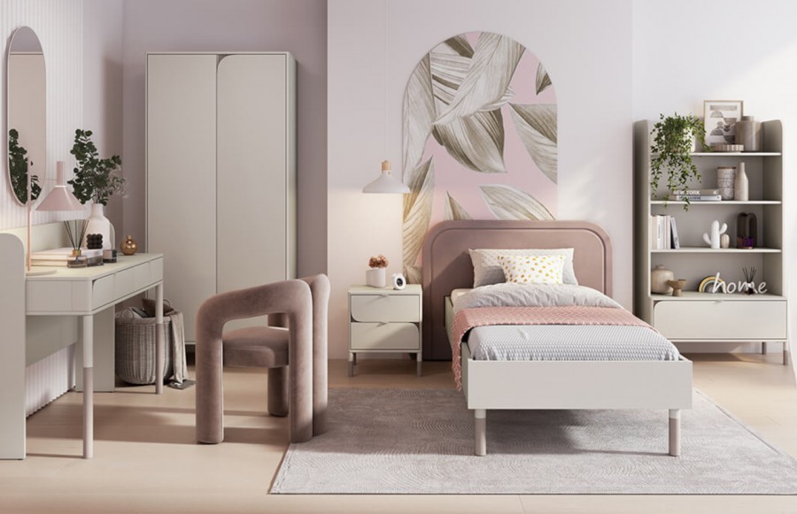 Kolekcja HARMONY - to doskonałe rozwiązanie dla wymagającej nastolatki, pragnącej funkcjonalności i stylu w swoim pokoju. Meble wykonane są w stonowanych kolorach kaszmiru i truflowego odcienia, dodając wnętrzu delikatności i elegancji. Zaokrąglone frezowania frontów nadają meblom subtelności i oryginalności, tworząc harmonijną atmosferę idealną do nauki, wypoczynku i rozwoju. Ten kompletny zestaw mebli został zaprojektowany z myślą o potrzebach i gustach młodzieży, tworząc przestrzeń, która jest zarówno praktyczna, funkcjonalna, jak i stylowa. Szafa z półkami i drążkiem to idealne rozwiązanie do organizacji garderoby. Regał z półkami i szufladą oferuje miejsce na ulubione książki, ozdoby czy akcesoria. Stolik nocny na nóżkach z dwiema szufladami zapewnia funkcjonalność obok łóżka. Biurko w formie toaletki łączy miejsce do nauki i pracy z przestrzenią do pielęgnacji, tworząc unikalny element w pokoju. Lustro nie tylko pełni funkcję praktyczną, ale także stanowi ozdobny akcent. Łóżko to wygodne miejsce do wypoczynku i snu, dopełniając kompleksowo aranżację pokoju. Meble HARMONY wyróżniają się wysoką jakością płyty meblowej, co przekłada się na ich trwałość na wiele lat.