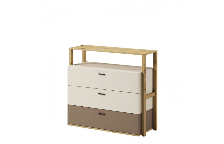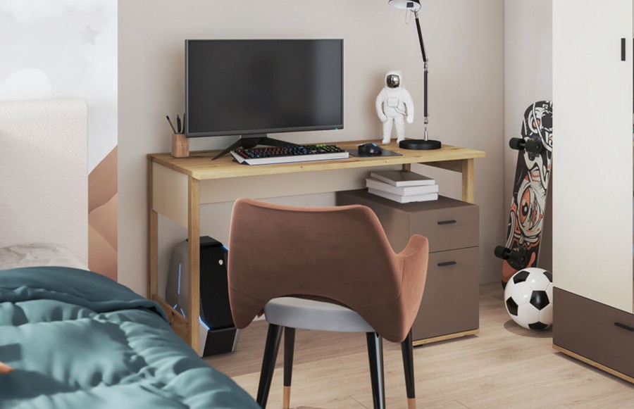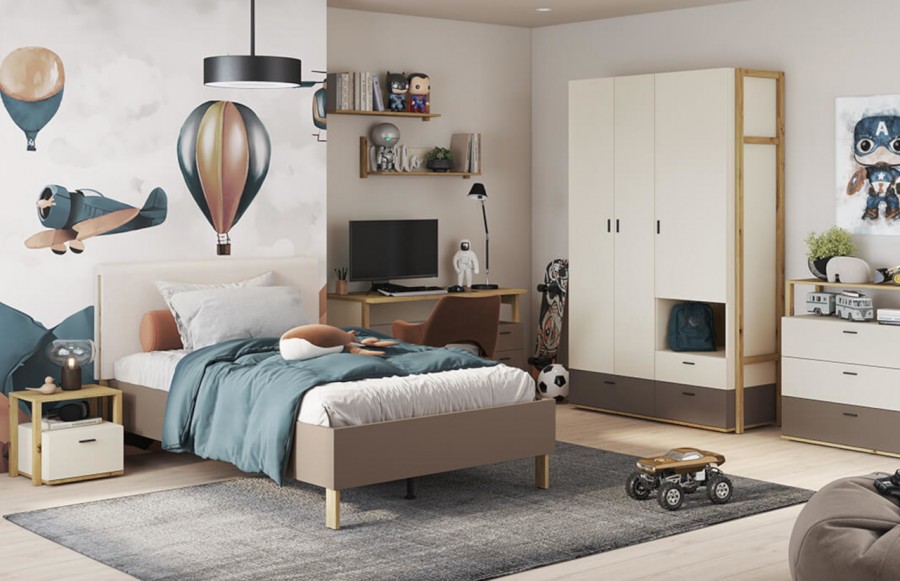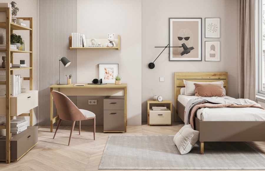 Kolekcja LENNY - to propozycja, która pasuje do pokoi zarówno dziewczynek, jak i chłopców. Ich subtelna kolorystyka, ażurowe regały i lekka forma pozwalają Ci nadać wnętrzu ostateczny charakter, który spełni oczekiwania każdego nastolatka. Połączenie beżu piaskowego, trufli oraz dekoru w kolorze dębu artisan sprawia, że kolekcja LENNY nie tylko jest modna, ale również ponadczasowa. Strefa nauki jest zaprojektowana przyjaźnie, sprzyjając nie tylko sukcesom w szkole, ale również rozwijając wyobraźnię i kreatywność. W kolekcji LENNY znajdziesz łóżka w dwóch rozmiarach do wyboru, z możliwością doposażenia ich w miękki tapicerowany zagłówek. Starannie przemyślana strefa przechowywania jest kluczowa dla utrzymania porządku na co dzień. Otwarte półki pozwalają na wyeksponowanie ulubionych zabawek i akcesoriów, a pojemne szuflady pomieszczą więcej niż się spodziewasz. Te meble dziecięce LENNY zostały zaprojektowane tak, aby rosnąć wraz z Twoim dzieckiem. Ich uniwersalna kolorystyka, funkcjonalne bryły oraz modny design sprawdzą się w różnych stylach aranżacyjnych, niezależnie od wieku dziecka, stanowiąc doskonałą bazę do tworzenia aranżacji. Wykonane z dbałością o najdrobniejsze szczegóły, meble dziecięce LENNY zapewniają komfort i funkcjonalność. Każdy element tej serii wyróżnia się nowoczesnym designem, wyjątkowym wykończeniem i doskonałą jakością wykonania, gwarantując solidność i estetykę przez lata użytkowania.