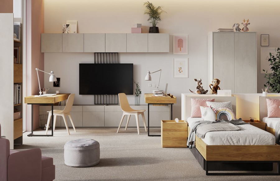 Kolekcja TEEN FLEX - to rewolucyjna kolekcja nowoczesnych mebli młodzieżowych, zapewniająca nie tylko funkcjonalność, ale również możliwość tworzenia przestrzeni, która odzwierciedla indywidualność i styl każdego nastolatka. Kolekcja składa się z mebli modułowych, co pozwala na elastyczne aranżacje, idealnie dopasowane do zmieniających się potrzeb i gustów użytkowników. Meble TEEN FLEX zostały zaprojektowane z myślą o funkcjonalności, wygodzie i estetyce, oferując innowacyjne rozwiązania ułatwiające organizację przestrzeni. Neutralne kolory, takie jak biel, beż i drewno, nadają meblom elegancji i pozwalają na łatwe dopasowanie ich do różnych stylów wnętrz. Minimalistyczny design, czyste linie i prostota form sprawiają, że meble te są idealne dla młodzieży i pasują do nowoczesnego wystroju wnętrz. TEEN FLEX to nie tylko kolekcja mebli, ale również koncepcja, która pozwala na tworzenie funkcjonalnej i stylowej przestrzeni dla młodych ludzi. Dzięki możliwościom personalizacji i modularności, meble te umożliwiają indywidualne dostosowanie pomieszczenia do potrzeb i preferencji użytkowników. Kolekcja mebli TEEN FLEX to odpowiedź na oczekiwania dorastającego pokolenia, które ceni funkcjonalność i atrakcyjny design. Bogaty wybór mebli pozwala na stworzenie pokoju dostosowanego do potrzeb i gustów każdego dziecka, co sprawia, że tak urządzony pokój szybko się nie znudzi. Odkryj możliwości kolekcji TEEN FLEX i stwórz wyjątkową przestrzeń, która będzie idealnie odpowiadać Twoim potrzebom i stylowi życia.
