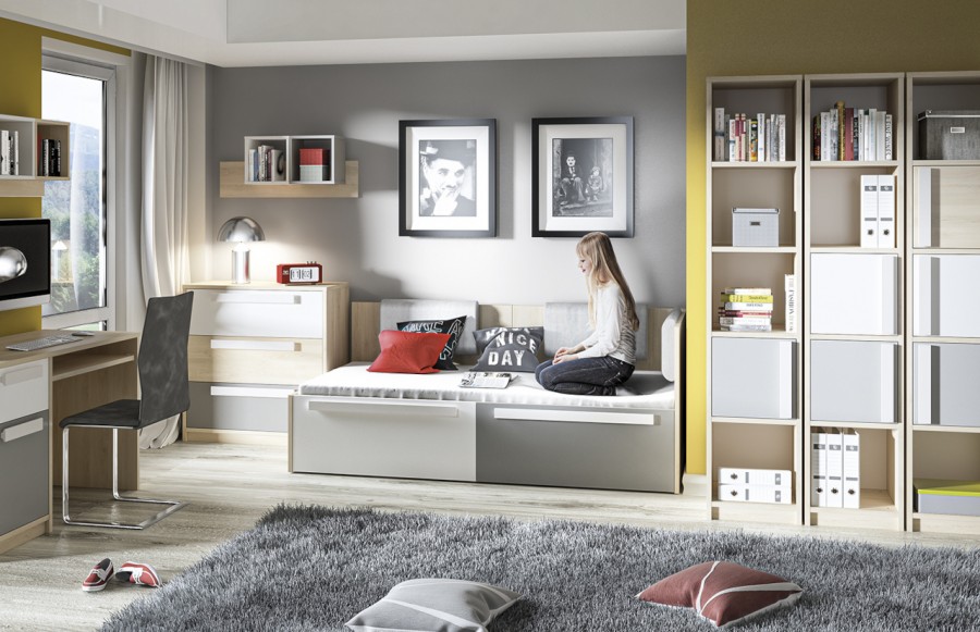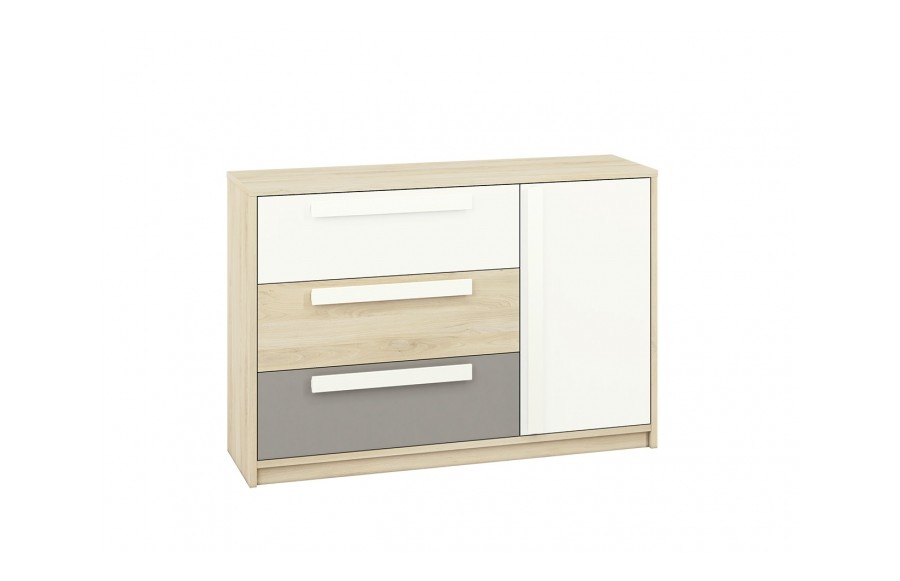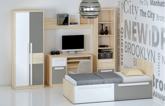 Kolekcja DROP - stworzony zgodnie z najnowszymi trendami wzornictwa, oferując naturalne kolory mebli i geometryczne uchwyty, podkreślające prostotę brył. Ta kolekcja jest idealnym wyborem do wnętrza pokoju młodzieżowego, umożliwiając tworzenie indywidualnych aranżacji dopasowanych zarówno do potrzeb chłopców, jak i dziewczyn. Dynamiczna kombinacja kolorów - białego i szarego z klasycznym bukiem - odzwierciedla temperament i energię nastolatków. Geometria frontów i korpusów wprowadza porządek, spójność i młodzieżową elegancję, podkreślając nieprzeciętność kolekcji. Kolekcja DROP to doskonałe rozwiązanie zarówno do pokoju dziecięcego, jak i młodzieżowego, dzięki swojej wszechstronności i dostosowaniu do zmieniających się potrzeb dziecka. Meble zostały wykonane z wysokiej jakości laminowanej płyty, zapewniając trwałość i odporność na uszkodzenia mechaniczne. Dzięki różnorodnym wielkościom szaf i regałów, kolekcja DROP pozwala na elastyczne i kreatywne łączenie, idealnie dopasowując meble do indywidualnych potrzeb i stylu wnętrza. Trzy rodzaje szaf, w tym narożna szafa-garderoba, zapewniają mnóstwo miejsca na przechowywanie rzeczy, doskonale wspierając utrzymanie porządku w pokoju. Starannie przemyślana strefa przechowywania to klucz do organizacji codziennego życia. Otwarte półki umożliwiają wyeksponowanie ulubionych przedmiotów, podczas gdy pojemne szuflady pomieszczą wszystko, czego potrzebujesz. Meble dziecięce DROP zostały zaprojektowane tak, aby rosnąć wraz z Twoim dzieckiem. Ich uniwersalny design i wysoka jakość wykonania sprawiają, że są solidną bazą do tworzenia różnorodnych aranżacji, które będą cieszyć oko przez wiele lat.