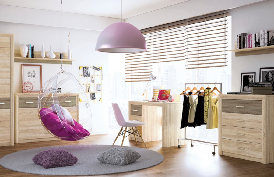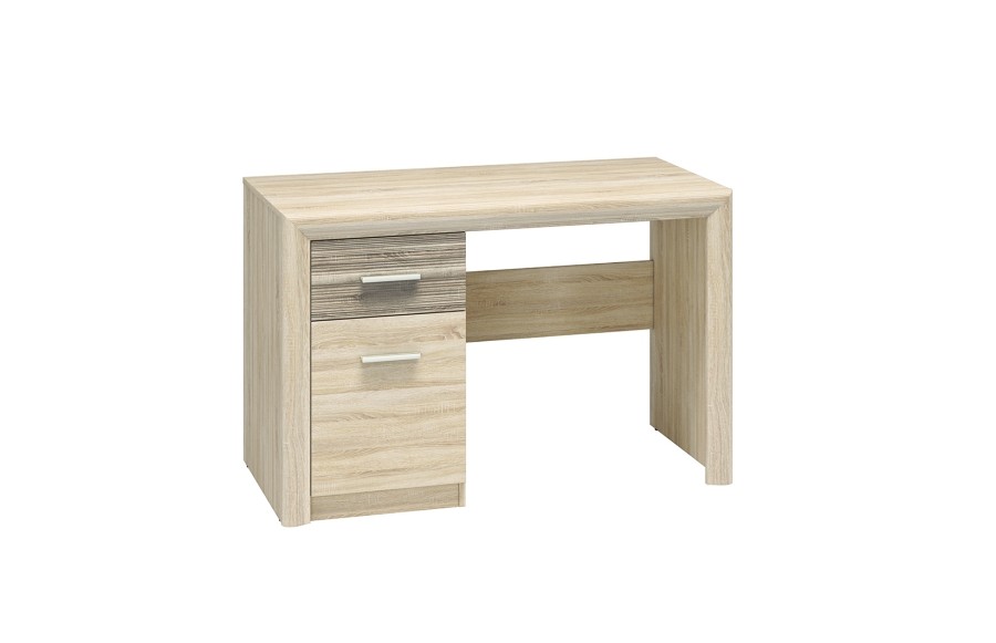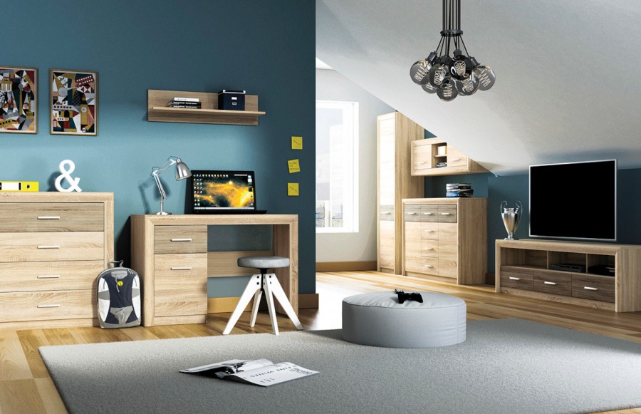 Kolekcja CASTEL - to idealne meble do pokoju nastolatka, stworzone z myślą o zaspokojeniu potrzeb zarówno dziewczynki, jak i chłopca. Ich naturalna, jasna kolorystyka wprowadza do wnętrza świeżość i nowoczesność, zapewniając jednocześnie uniwersalność. Kolekcja CASTEL została wykonana z płyty laminowanej o modnym kolorze jasnego dębu sonoma, uzupełnionej ryflowaną wstawką MDF w odcieniu dąb sonoma truflowa. Szerokie, zaokrąglone ramki MDF dodają solidności meblom, jednocześnie zachowując delikatność, która pasuje do każdego wnętrza domowego. Elegancję kolekcji podkreślają trzypunktowe oświetlenie LED oraz uchwyty w kolorze szampańskim, stanowiące idealne wykończenie tej pełnej charakteru serii. Bogaty wybór mebli pozwala na elastyczne dostosowanie pokoju do potrzeb i gustów każdego dziecka, zapewniając, że taki wystrój nie będzie nudził się z czasem. Funkcjonalne biurko, komody, szafy, szafki RTV i półki zapewniają idealny porządek oraz organizację pracy w pokoju Twojego dziecka. Strefa nauki została zaprojektowana przyjaźnie, wspierając nie tylko osiągnięcia w szkole, ale także rozwijając wyobraźnię i kreatywność. Odkryj możliwości kolekcji CASTEL i stwórz wyjątkową przestrzeń, która idealnie odpowiada Twoim potrzebom i stylowi życia.