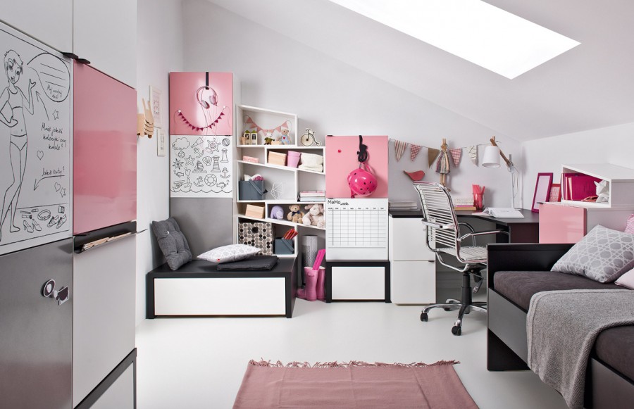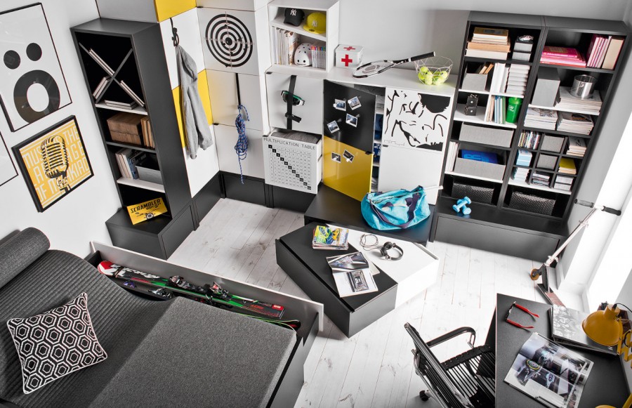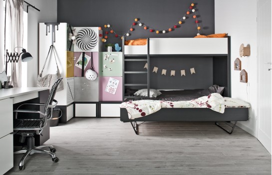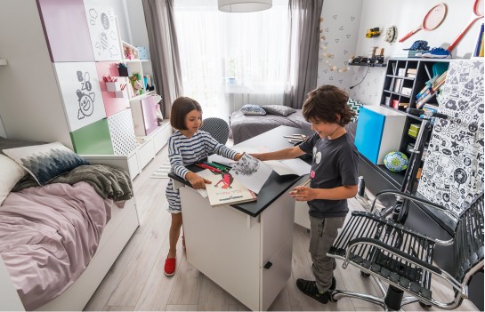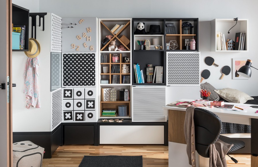 Kolekcja YOUNG USERS - to rewolucyjna kolekcja mebli, która rośnie wraz z użytkownikiem, niezależnie od wieku i preferencji. Funkcjonalne bryły w kolorach czerni i bieli, wzbogacone szeroką gamą dodatków, sprawią, że Twoje wnętrze będzie wyjątkowe. Projektowanie wnętrz dla dzieci, nastolatków i młodych ludzi wymaga uwzględnienia ich potrzeb emocjonalnych, psychicznych i rozwojowych. Kolekcja YOUNG USERS została stworzona z myślą o zmieniającym się stylu życia, modzie oraz zainteresowaniach młodych ludzi. Te modułowe meble umożliwiają personalizację wnętrza poprzez nieograniczone możliwości kombinacji oraz dodatków. Zapewniają one mobilność, wielofunkcjonalność i elastyczność, co pozwala dostosować meble do zmieniających się potrzeb i preferencji użytkownika. Tworząc przestrzeń dla dziecka, należy zadbać o atmosferę, która pobudzi jego wyobraźnię i rozbudzi chęć poznawania świata. Kolekcja YOUNG USERS oferuje biurka, regały, łóżka i półki, które wspierają rozwój dziecka oraz pobudzają jego kreatywność. Dzięki systemowi wymiennych, metalowych nakładek, meble te można łatwo dostosowywać do zmieniającej się osobowości dziecka, co sprawia, że kolekcja rośnie wraz z jego potrzebami. To idealne rozwiązanie zarówno dla dziecka, jak i dla rodziców, którzy nie będą musieli często wymieniać mebli wraz z rozwojem swojego malucha. Kolekcja YOUNG USERS to nie tylko komiksowe wzory, intensywne kolory i graficzne motywy, ale także stonowane odcienie szarości i drewniane dekory. Nowa odsłona tej kolekcji oferuje również paletę neonowych kolorów, takich jak żółty, niebieski i różowy, pozwalając na jeszcze większą personalizację i ekspresję w aranżacji wnętrza.
