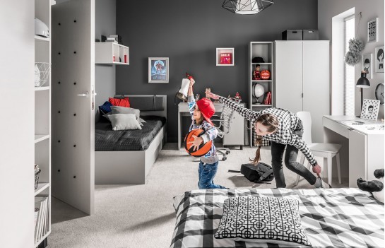 Kolekcja SIMPLE - to idealne meble do pokoju nastolatka, stworzone z myślą o zaspokojeniu potrzeb zarówno dziewczynki, jak i chłopca. Ich naturalna, jasna kolorystyka wprowadza do wnętrza świeżość i nowoczesność, zapewniając jednocześnie uniwersalność. Kolekcja SIMPLE została stworzona z myślą o prostocie i wygodzie. Proces konfiguracji mebli jest tu łatwy i intuicyjny. Bez względu na wybór, każdy zestaw prezentuje się elegancko i funkcjonalnie. Szafy z harmonijkowymi drzwiami, oświetlane półki i szuflady oraz specjalne przepusty na kable sprawiają, że codzienne życie staje się jeszcze łatwiejsze. Uniwersalne i trwałe meble zaprojektowano, aby służyły przez lata. A jeśli zechcesz zmienić ich wygląd, wystarczy wymienić fronty, bez potrzeby zakupu nowych mebli. Simple pozwala na swobodną kombinację kolorów i wyboru nóżek, co daje nieograniczone możliwości aranżacyjne. W kolekcji SIMPLE dostępne są 4 rodzaje szaf, wygodne biurka, komody oraz regały. To kompleksowe rozwiązanie dla Twojego dziecka, zapewniające warunki sprzyjające jego rozwojowi i samodzielności. Możesz spersonalizować swój mebel, wybierając kolory i inne opcje. Kolekcja SIMPLE to także wygodne łóżka, które łączą w sobie funkcjonalność i elegancję. Cztery z nich posiadają stelaż uchylny z pojemnikiem na pościel. Dodatkowo oferowane są tapicerowane poduchy na zagłówek. Szczegółowe wykończenia są dostępne w różnych kolorach. Zdefiniuj swój wymarzony mebel, wybierając kolor korpusu, frontów, uchwytów i rodzaj nóżek. Każdy detal został starannie przemyślany, aby spełnić oczekiwania młodego człowieka dotyczące funkcjonalności i estetyki. Kolekcja SIMPLE oferuje różnorodność rozmiarów i konfiguracji, umożliwiając dostosowanie mebli do potrzeb i wymiarów pomieszczeń, będąc wszechstronnym rozwiązaniem dla wielu przestrzeni mieszkalnych.