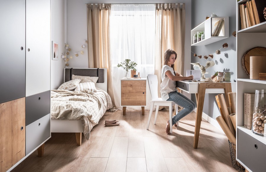 Kolekcja CONCEPT - to niezwykłe meble o wyrazistym charakterze, które nie tylko oferują mnóstwo miejsca do przechowywania, ale także nadają wnętrzom wyjątkowy styl dzięki swojej wesołej kolorystyce. Dzięki możliwości zmiany frontów mebli, łatwo możesz odmienić aranżację wnętrza, co sprawia, że kolekcja CONCEPT jest wyjątkowo elastyczna i dopasowuje się do Twoich potrzeb. Planując pokój dziecięcy, z kolekcją CONCEPT możesz wybierać spośród 6 różnych kolorów frontów. Połączenie różnych barw lub skupienie się na jednym tonie pozwoli Ci zbudować wnętrze, które będzie odzwierciedleniem charakteru i upodobań Twojego malucha. Gdy nadejdzie chwila na zmiany, wystarczy wymienić kolorowe fronty, aby odświeżyć wygląd pokoju. Uniwersalny design i drewniane detale sprawiają, że meble z kolekcji CONCEPT doskonale odnajdą się również w dorosłych przestrzeniach. Pojemne meble z kolekcji CONCEPT inteligentnie pomieszczą wszystkie rzeczy potrzebne nastolatkowi, oferując jednocześnie sprytne rozwiązania, takie jak wyprofilowany zagłówek łóżka, idealny do wieczornego relaksu, oraz wygodne, silikonowe uchwyty ułatwiające otwieranie szaf i szuflad. Biurko z kolekcji CONCEPT to doskonałe wsparcie zarówno dla dzieci, nastolatków, jak i dorosłych w codziennych obowiązkach. Przestronny blat i szuflady pozwalają zachować porządek, a jego uniwersalny design pasuje do różnych stylów aranżacyjnych. Wielofunkcyjne łóżko z kolekcji CONCEPT to doskonały mebel do wypoczynku i regeneracji, zapewniający nie tylko zdrowy sen, ale także komfort podczas czytania, nauki i zabawy. Dostępne w różnych szerokościach, łóżka można łatwo dopasować do różnych pomieszczeń, a specjalne szuflady na kółkach pozwalają na przechowywanie sezonowych ubrań czy zabawek. Kanapa z kolekcji CONCEPT może być świetną alternatywą dla tradycyjnego łóżka, oferując wygodne miejsce do snu, czytania książek czy oglądania filmów. Meble dziecięce CONCEPT są wykonane z dbałością o detale, co gwarantuje nie tylko komfort, ale także trwałość. Ich nowoczesny design, doskonałe wykończenie i wysoka jakość wykonania sprawiają, że będą cieszyć oko przez wiele lat.