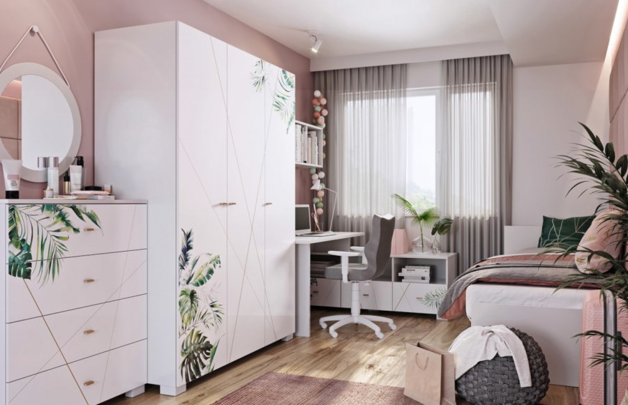 Kolekcja NATURE - odkryj magię motywu liści i złotych akcentów oraz stwórz swoje klimatyczne wnętrze z kolekcją NATURE. To połączenie elegancji i solidności, które idealnie wpasuje się w każde dziecięce pomieszczenie, od narodzin aż po dorosłość. Wyjątkowe fronty mebli z grawerowanymi, matowymi liśćmi, podkreślone wyrazistymi złotymi liniami oraz korpusy utrzymane w białym kolorze tworzą niepowtarzalny design, spełniając marzenia każdego dziecka. Różnorodność brył i wysoka funkcjonalność zapewniają wygodę zarówno niemowlakom, przedszkolakom, uczniom, jak i studentom, adaptując się do ich zmieniających się potrzeb. Meble z kolekcji NATURE nie tylko podążają za najnowszymi trendami pod względem kolorystyki i designu, ale także spełniają najwyższe standardy jakościowe i bezpieczeństwa. Posiadają certyfikat TUV oraz spełniają surowe normy polskie i europejskie, co gwarantuje bezpieczeństwo Twojego dziecka. Solidna konstrukcja oraz wysokiej jakości podzespoły pozwalają zaoferować 5-letnią gwarancję na produkty z tej kolekcji. Dla lepszej użyteczności i funkcjonalności, meble te oferują szereg udogodnień, takich jak system otwierania drzwi push-to-open oraz zawiasy BLUM z funkcją cichego domykania. Fronty malowane są ekologicznymi farbami wodnymi BECKERS i utwardzone promieniowaniem UV, co zwiększa ich odporność na uszkodzenia. Korpusy mebli wykonane z laminowanej płyty o grubości 18 mm zapewniają wyjątkową odporność na zarysowania. Kolekcja NATURE dedykowana jest dzieciom i młodzieży, którzy cenią sobie klasyczny, stonowany design oraz oczekują funkcjonalności i elegancji. Dzięki solidnemu wykonaniu i wysokiej jakości materiałom, meble te będą służyć przez wiele lat, tworząc wygodne, funkcjonalne i estetyczne otoczenie sprzyjające rozwojowi i samodzielności dzieci.
