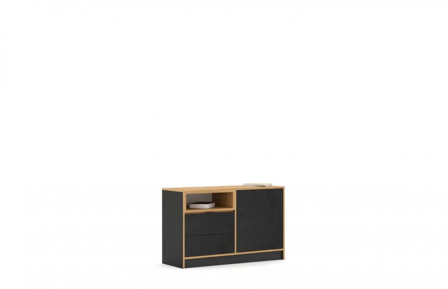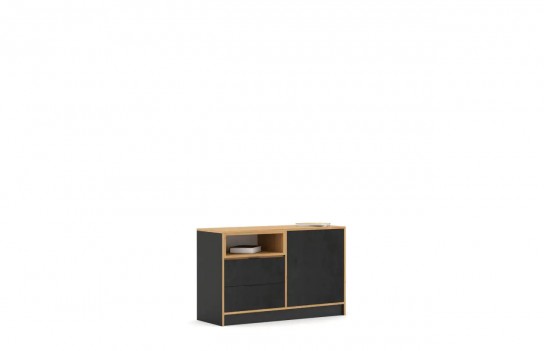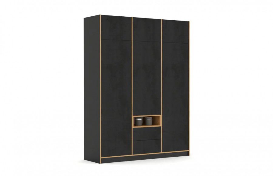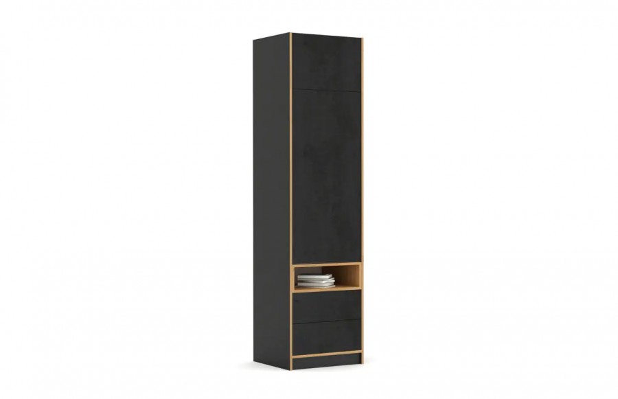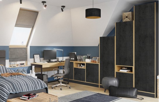 Kolekcja CONCRETE OAK - beton i drewno – to dopiero połączenie! Nietypowy wygląd frontów podkreślają skrzynki i obrzeża w kolorze dębu. Takie rozwiązanie nada Twojemu wnętrzu nowoczesnego i intrygującego wyglądu. Meble CONCRETE OAK z motywem betonu, to doskonałe rozwiązanie do urządzenia pokoju młodzieżowego, który wyróżni Twoje wnętrze. Wykonany z laminowanej płyty korpus ma elegancki kolor drewna, co nadaje im wyrafinowanego wyglądu. Dzięki starannemu wykonaniu z wysokiej jakości materiałów, meble te zachwycają trwałością i solidnością. Dodatkowo, zawiasy BLUM z funkcją cichego domykania gwarantują komfort użytkowania. W pokoju nastolatka ważne jest podkreślenie jego indywidualnego stylu, dlatego kolekcja CONCRETE OAK oferuje konfigurowalne wnętrza szaf, biurek z szufladami i metalowymi nogami, oraz wiele innych elementów, które pozwalają dopasować przestrzeń do potrzeb, gustu i zainteresowań młodego mieszkańca. Meble CONCRETE OAK spełniają rygorystyczne wymogi bezpieczeństwa i uzyskały certyfikaty TÜV, co zapewnia Państwu spokój o bezpieczeństwo dzieci. Solidne wykonanie oraz wysoka jakość materiałów, w tym laminowana płyta o podwyższonej odporności na zarysowania i uszkodzenia, gwarantują trwałość i długotrwałą satysfakcję z użytkowania. Dzięki różnorodności konfiguracji szaf i komód, kolekcja CONCRETE OAK pozwala na elastyczne i kreatywne łączenie mebli, idealnie dopasowując je do indywidualnych potrzeb i stylu wnętrza. Pojemne szafy, komody oraz regały zapewniają mnóstwo miejsca na przechowywanie rzeczy, doskonale wspierając utrzymanie porządku w pokoju. Meble CONCRETE OAK zostały zaprojektowane tak, aby rosnąć wraz z dzieckiem, zapewniając solidną bazę do tworzenia różnorodnych aranżacji, które będą cieszyć oko przez wiele lat.