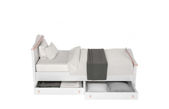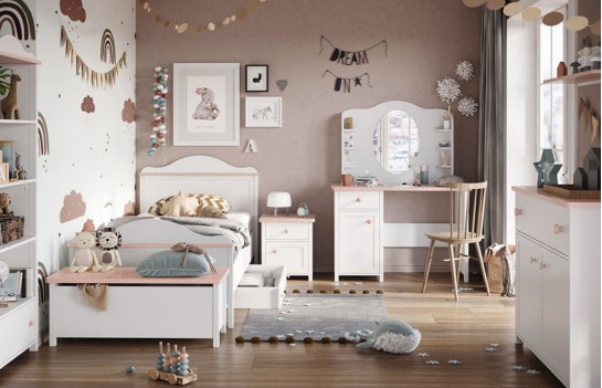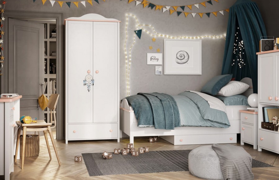 Kolekcja LUNA - zawiera wszystkie niezbędne elementy, aby stworzyć przestrzeń, w której nauka, odpoczynek i zabawa łączą się w harmonijną całość. Odkryj możliwości konfiguracji mebli, wybierając spośród komód, regałów, szaf, szafek nocnych, szafek RTV i łóżek. Kolekcja Luna oferuje także funkcjonalne biurko, które może pełnić rolę zarówno małego sekretarzyka, jak i uroczej toaletki. Meble tej kolekcji wyróżniają się nie tylko pięknymi śnieżnobiałymi frontami, ale również dodatkami w delikatnym odcieniu pudrowego różu oraz ozdobnymi wieńcami. To połączenie tworzy prawdziwie baśniowy nastrój, który przeniesie pokój Twojego dziecka w magiczny świat. Jednak nie tylko wygląd jest istotny - meble z serii LUNA są również niezwykle funkcjonalne oraz trwałe. To klucz do efektywnego wykorzystania przestrzeni w pokoju dziewczynki, gdzie zawsze brakuje miejsca. Meble LUNA wyróżniają się wysoką jakością płyty meblowej, co przekłada się na ich trwałość na wiele lat. Bez względu na wiek Twojej małej królewny, możesz być pewny, że kolekcja LUNA spełni marzenia o idealnie urządzonym pokoju.