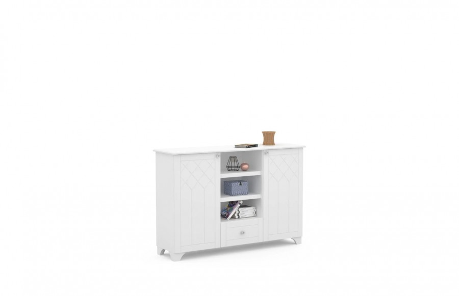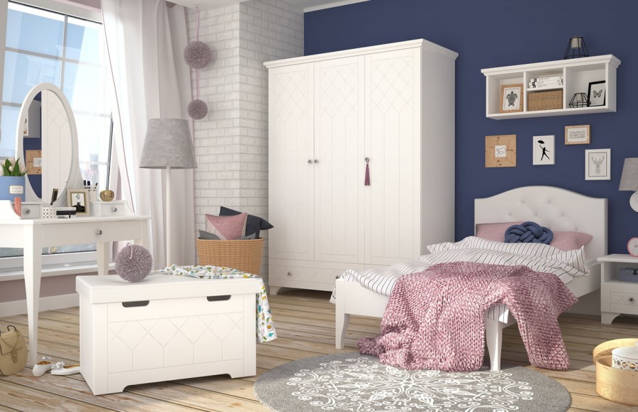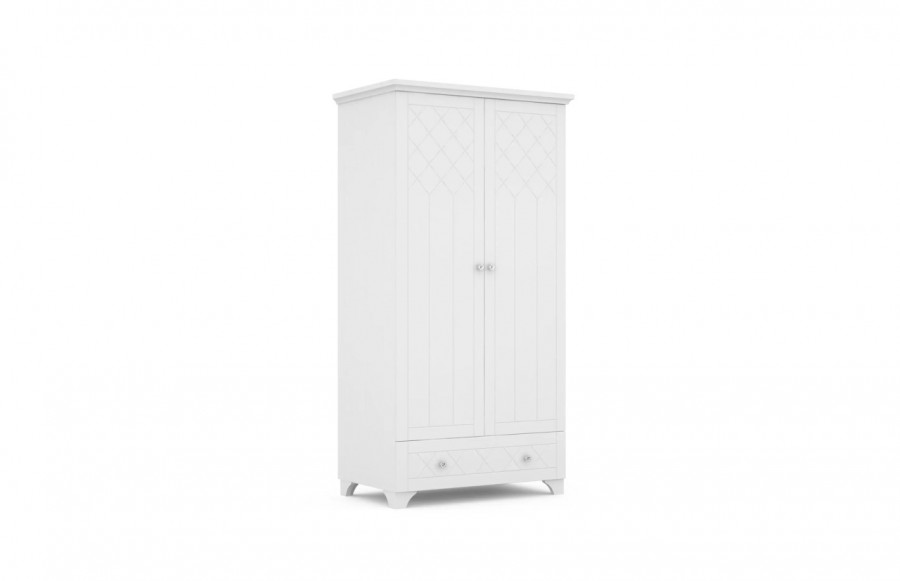 Kolekcja ROYAL WHITE - to eleganckie, białe meble z delikatnym, stylowym grawerem, które przywołują ducha retro w zupełnie nowoczesnej odsłonie. Subtelne korony, półokrągłe nóżki oraz fronty zdobione kryształowymi uchwytami to detale, które zachwycą każdą kobietę i dziewczynkę. Meble ROYAL WHITE to klasyka w nowoczesnym wydaniu. Korpus o alpejskiej bieli z delikatną strukturą zapewnia niepowtarzalny charakter. Solidny korpus został wykonany z laminowanej płyty, gwarantując nie tylko piękny wygląd, ale także wyjątkową wytrzymałość. To nie wszystko - producent udziela aż siedmioletniej gwarancji na ich trwałość. To inwestycja w przyszłość pełną stylu i użyteczności. Bogaty wybór uniwersalnych brył sprawia, że meble pasują do różnych gustów i wystrojów wnętrz. Fronty kolekcji ROYAL WHITE malowane są przy użyciu ekologicznych farb wodnych BECKERS, które są utwardzane promieniowaniem UV. Oznacza to, że linia mebli nie tylko prezentuje się świetnie, ale również jest odporna na uszkodzenia i odpryski, zachowując swoją elegancję na długie lata. Meble ROYAL WHITE posiadają również certyfikat bezpieczeństwa TÜV, co daje Ci pewność, że spełniają najwyższe standardy jakości i bezpieczeństwa. Niech Twój pokój dziecięcy stanie się miejscem, gdzie styl spotyka funkcjonalność. Wybierz meble, które będą rosnąć wraz z Twoim dzieckiem.
