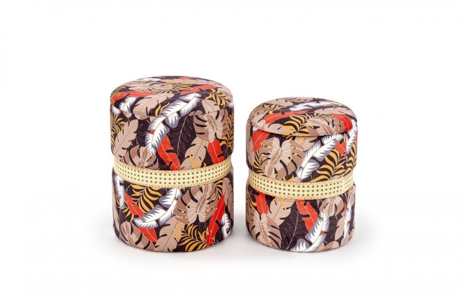 Zestaw puf KENIA - to solidnie wykonane meble o eleganckim designie, idealne dla tych, którzy szukają zarówno stylowych, jak i praktycznych rozwiązań. Ich uniwersalny design pasuje do różnych aranżacji wnętrz, dodając oryginalności dzięki kolorowemu motywowi w liście. Wykonane z wysokiej jakości materiałów, te pufy są trwałe i odporne na uszkodzenia, zapewniając niezawodność na lata.