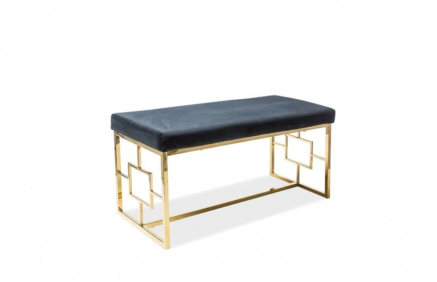 ŁAWKA NOIR - stanowi doskonałą alternatywę dla tradycyjnej kanapy lub sofy. Jej dwuosobowe siedzisko jest pokryte miękką, aksamitną tkaniną w eleganckim kolorze czarnym. Stabilny stelaż z metalu w kolorze złotym nadaje jej wyjątkowego charakteru, czyniąc ją efektownym elementem dekoracyjnym w każdym salonie, przedpokoju czy sypialni. Ta urocza tapicerowana ławeczka doskonale uzupełni nowoczesne wnętrza oraz te utrzymane w stylu glamour.