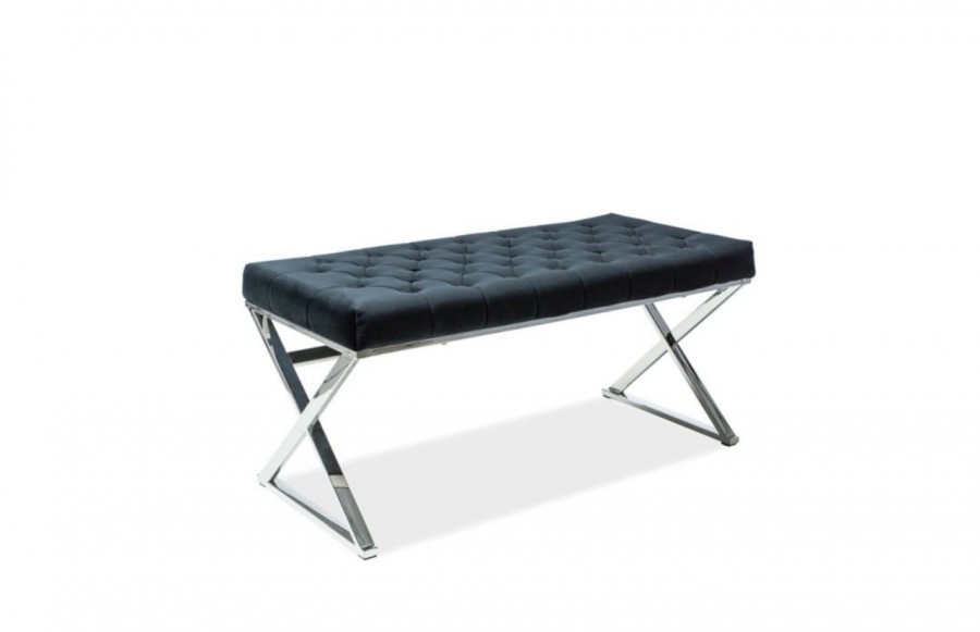 Pufa ONYX - nowoczesna i elegancka ławka z uroczymi pikowaniami, które dodają wyrafinowanego stylu. Aksamitna tapicerka w kolorze czarnym zapewnia estetykę i dopasowanie do każdej aranżacji wnętrza. Wyjątkowy stelaż wykonany z chromowanego metalu prezentuje się designersko i nowocześnie, jednocześnie gwarantując stabilność, wytrzymałość oraz komfort. Ławka doskonale sprawdzi się jako dodatkowe miejsce do siedzenia w salonie, jadalni lub przedpokoju, dodając charakteru i elegancji przestrzeni.