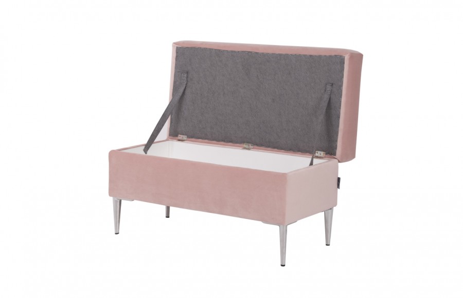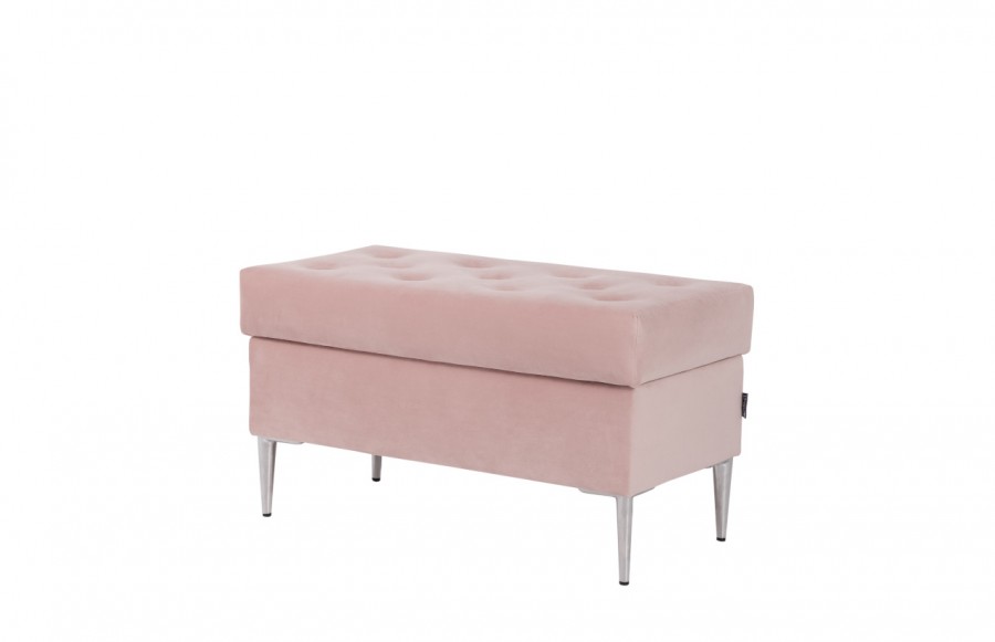 Pufa ROYAL - z pojemnikiem to emanacja nowoczesnego glamour. Chromowane, wysokie nóżki dodają jej stylu i lekkości, a pikowane siedzisko emanuje elegancją. To niezastąpiony element zarówno w salonie, jak i w sypialni, idealnie sprawdzi się również ustawiony obok toaletki. Dostępna w różnorodnych wariantach kolorystycznych i obiciach, pufa ROYAL może być spersonalizowana zgodnie z preferencjami użytkownika, zapewniając nie tylko atrakcyjny wygląd, ale także praktyczne funkcje.