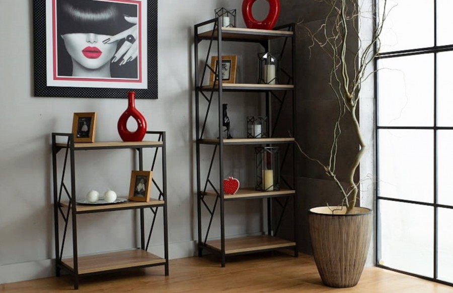Regał TABLO R5 - to esencja stylu loftowego, łącząca surowość z funkcjonalnością. Inspirowany klasycznymi regałami warsztatowymi, ten regał wyróżnia się awangardowymi wzorami na bokach stelaża, dodając niepowtarzalnego charakteru. Z czterema praktycznymi półkami wykonanymi z trwałej płyty MDF w dębowej okleinie oraz solidnym metalowym stelażem w ciemnym brązie, TABLO stanowi nie tylko funkcjonalne, ale także stylowe uzupełnienie każdego wnętrza.