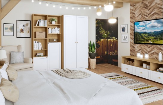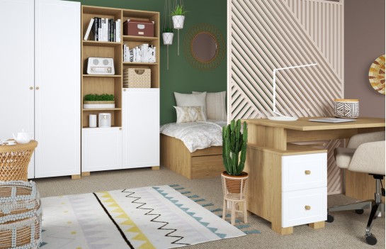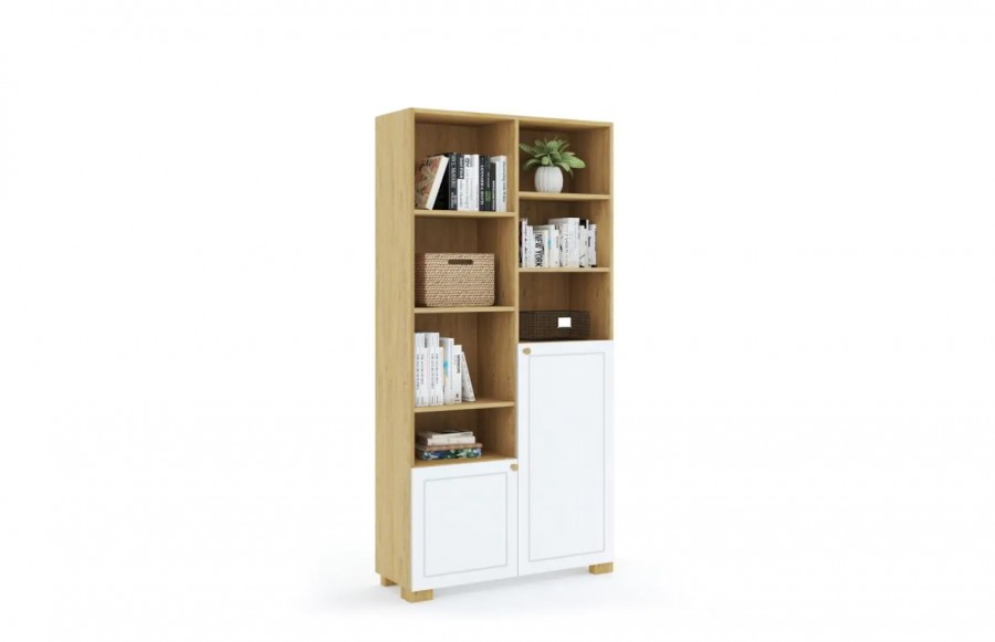 Regał FRAME OAK WHITE 100 - idealny regał do pokoju młodzieżowego, z białymi grawerowanymi frontami, które nadają mu nowoczesnego wyglądu. Dzięki starannemu wykonaniu z wysokiej jakości materiałów, ten regał zachwyca trwałością i solidnością. Z mnóstwem półek, regał FRAME OAK WHITE 100 zapewnia dużą przestrzeń do przechowywania różnorodnych przedmiotów, od książek po ozdoby. Korpus z dębowej, laminowanej płyty zapewnia trwałość, a uchwyty i nóżki z lakierowanego drewna dębowego dodają elegancji. Zawiasy BLUM z funkcją cichego domykania gwarantują komfort użytkowania. Fronty malowane ekologicznymi farbami wodnymi BECKERS, zwiększają ich odporność na uszkodzenia. Dodatkowe podpórki zapobiegają wysuwaniu się półek, a 5-centymetrowe nóżki dodają stabilności. Posiada certyfikat bezpieczeństwa TÜV.