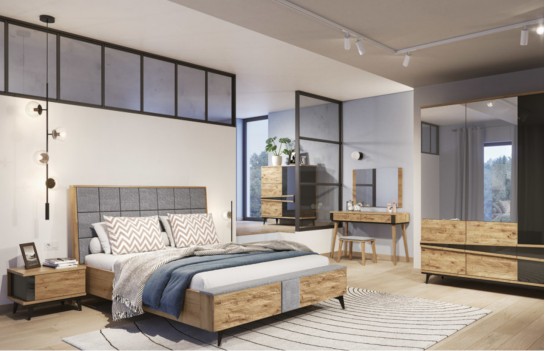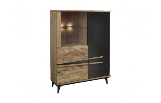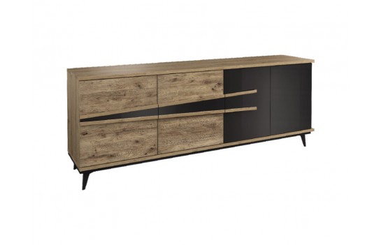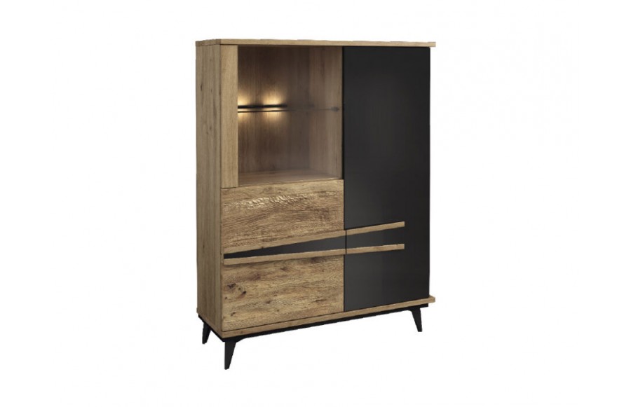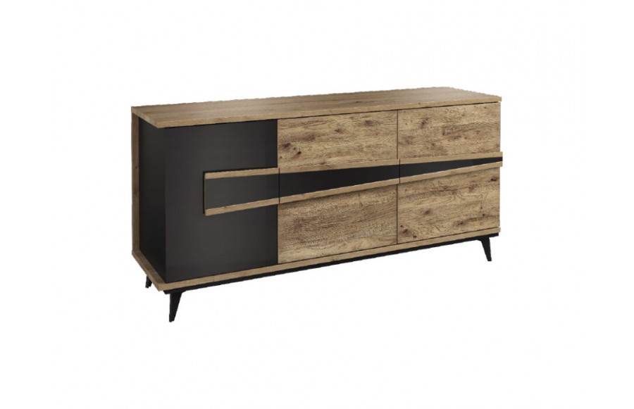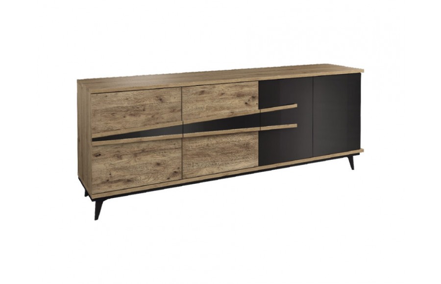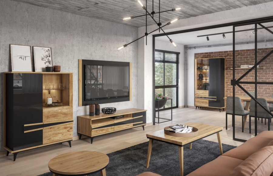 Kolekcja ETNA - to wyjątkowa kolekcja mebli, która doskonale pasuje zarówno do salonu, jadalni, jak i sypialni. Wykonana z litego drewna i naturalnej okleiny, wyróżnia się industrialnym stylem i niezwykłą paletą kolorystyczną, łącząc dąb naturalny lager z głęboką czernią szkła. Starannie strukturyzowane drewniane elementy z dębu nadają meblom wyjątkowy charakter. Wyjątkowy styl podkreślony jest przez metalowe nóżki i oryginalne uchwyty z czarnego szkła, które dodają im lekkości i designerskiego wyglądu. Blaty stołów są nie tylko trwałe, ale także odporne na wysoką temperaturę oraz działanie alkoholu. Dodatkowo, meble ETNA wyposażono w nowoczesne rozwiązania, takie jak ciche domykanie drzwi oraz system oświetlenia LED, co sprawia, że są one zarazem stylowe, jak również bardzo funkcjonalne. Bogata oferta linii ETNA obejmuje różnorodne elementy, które możemy dostosować do naszych potrzeb, pozwalając na aranżację w każdym pomieszczeniu. Dzięki ETNA stworzysz salon, który łączy w sobie wygodę, estetykę i unikalny styl.