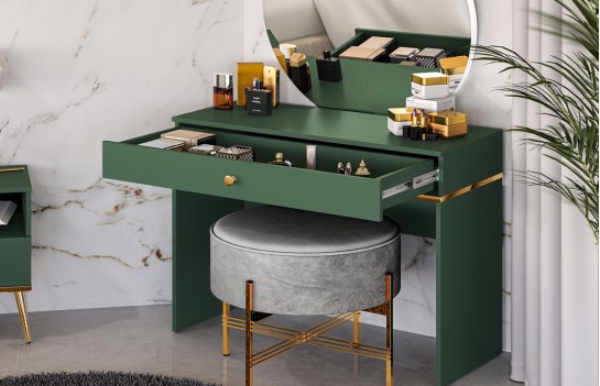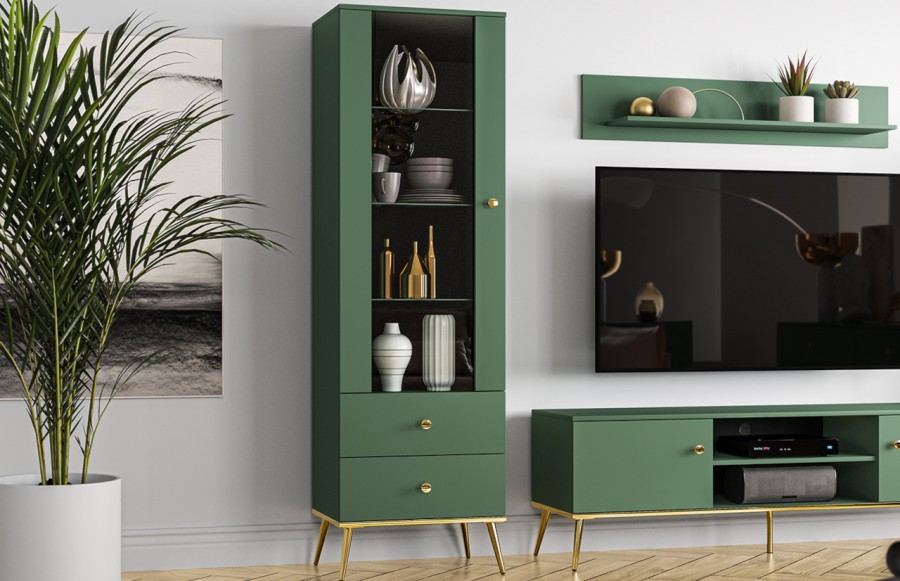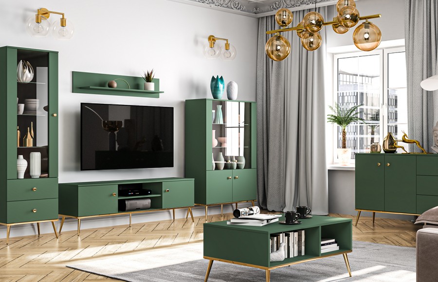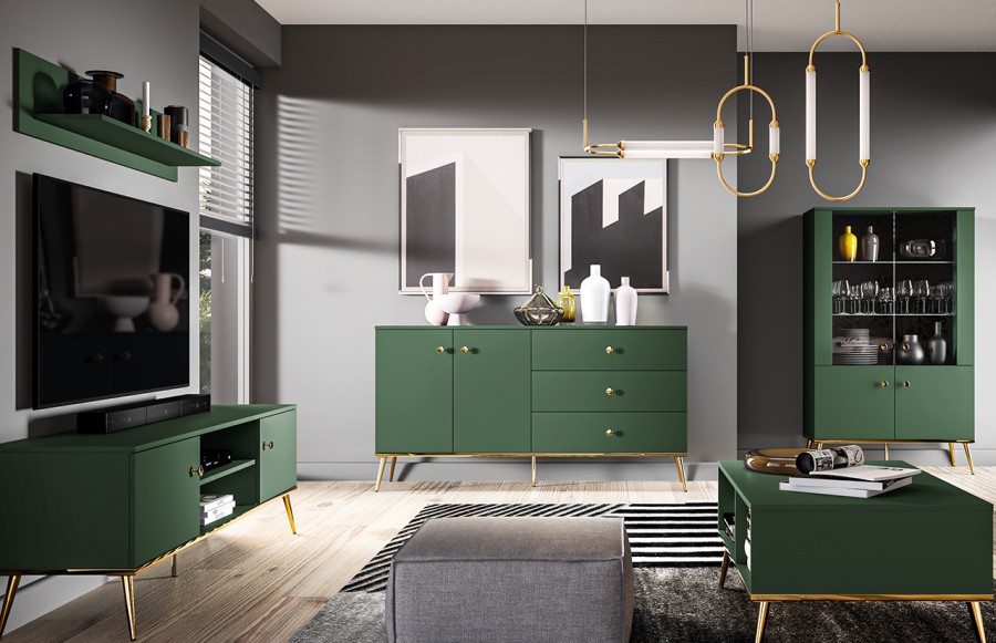 Kolekcja FOREST - to kwintesencja elegancji, ekskluzywności i doskonałej jakości. Ta propozycja doskonale komponuje się z nowoczesnymi i klasycznymi aranżacjami wnętrz. Złoto zestawione z intensywną zielenią labradoru nadaje meblom wyrafinowanego wyglądu, który przyciąga uwagę i dodaje im charakteru oraz klasy. Stabilne podstawy i uchwyty w złotym wykończeniu nie tylko spełniają swoje praktyczne funkcje, ale również stanowią designerskie akcenty, nadając meblom wyjątkowego charakteru. Różnorodność elementów w systemie meblowym pozwala swobodnie dostosować przestrzeń do indywidualnych potrzeb, tworząc harmonijną kompozycję o luksusowej atmosferze. Kolekcja FOREST to połączenie funkcjonalności, stylu i wyjątkowego designu. Jeśli marzysz o wnętrzu o niepowtarzalnym charakterze, te meble spełnią Twoje oczekiwania, dodając luksusowy akcent Twoim wnętrzom.