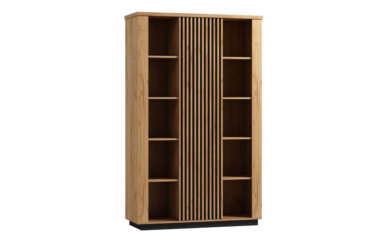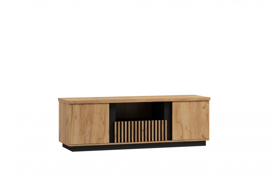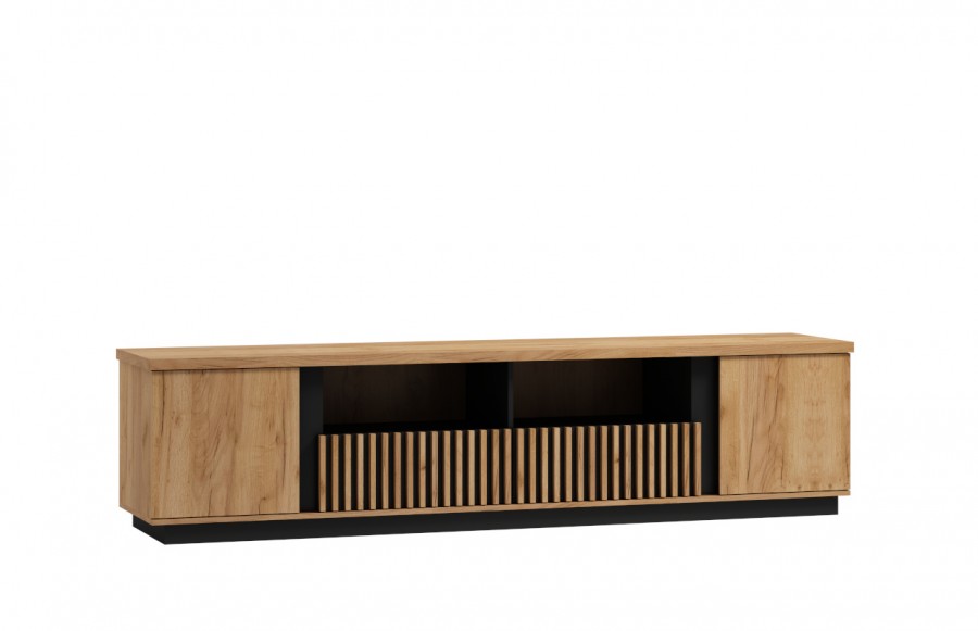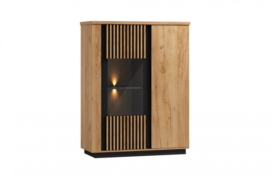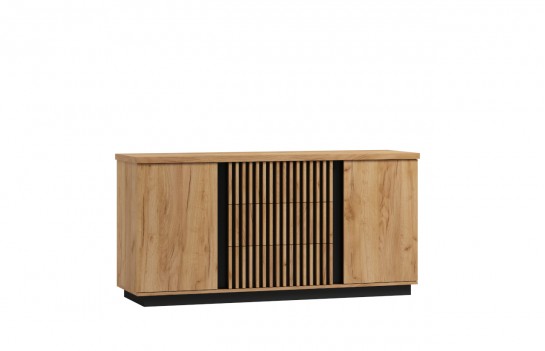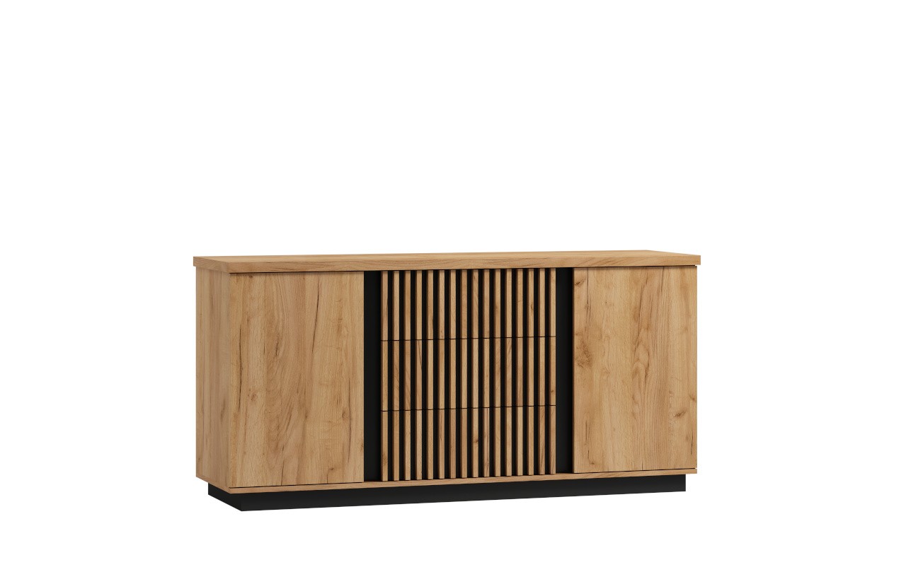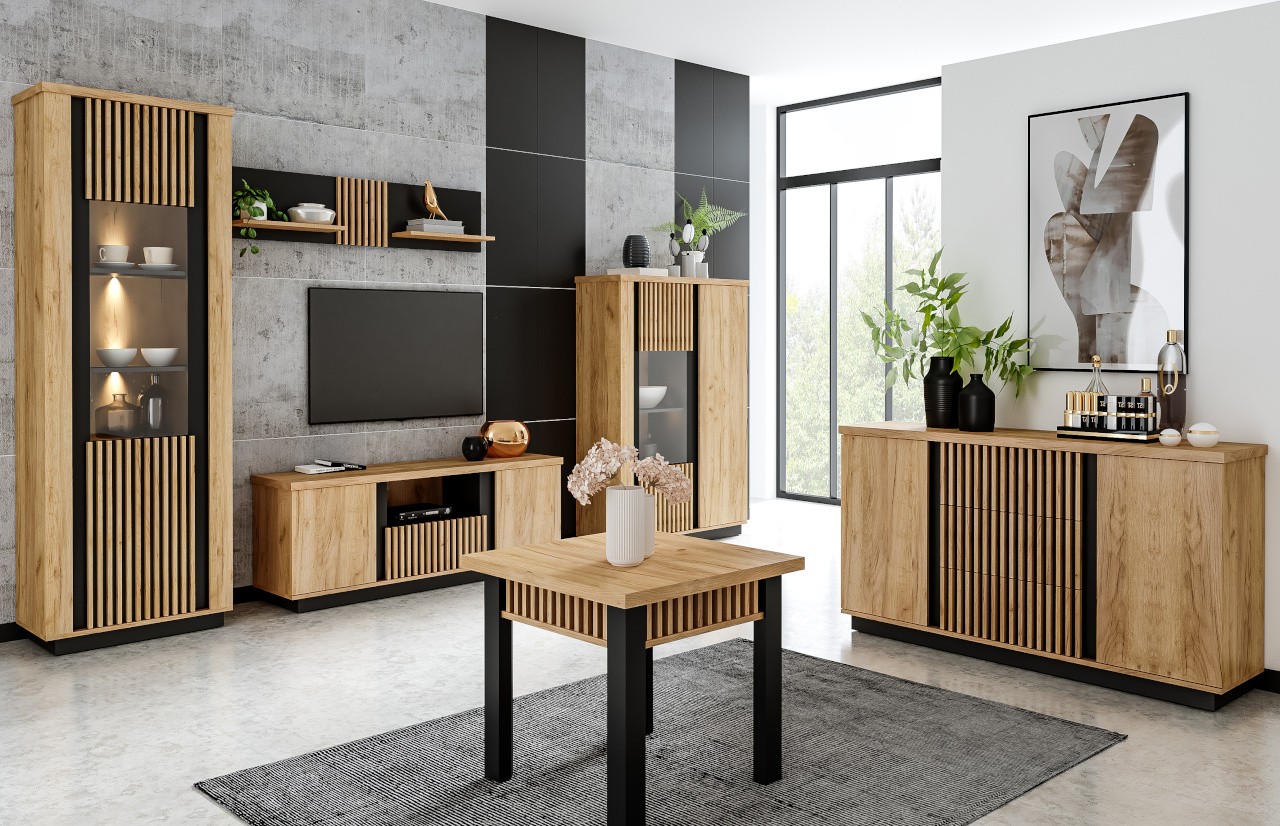 Kolekcja LAMELLO - odkryj idealne połączenie funkcjonalności i nowoczesnego wzornictwa w kolekcji LAMELLO, która doskonale wpisuje się w charakter współczesnych wnętrz. Kolekcja obejmuje różnorodne meble, takie jak komody, witryny, stoliki, szafki RTV, biurka, łóżka, szafy, stoliki nocne i półki, wszystkie stworzone z myślą o tworzeniu ciepłej i naturalnej przestrzeni. Fronty mebli wyróżniają się głębokim odcieniem dębu craft i eleganckim, matowym czarnym wykończeniem, co nadaje im kontrastowy i stylowy wygląd, idealny do nowoczesnych aranżacji. Konstrukcja mebli wykonana z wysokiej jakości laminowanej płyty wiórowej zapewnia nie tylko trwałość, ale także stabilność, dzięki czemu meble zachowują swój wygląd i funkcjonalność przez wiele lat. Kolekcja LAMELLO doskonale łączy estetykę i funkcjonalność, spełniając oczekiwania współczesnych klientów poszukujących eleganckich i praktycznych rozwiązań do swoich wnętrz. Dzięki meblom LAMELLO stworzysz wyjątkową przestrzeń, która nie tylko zachwyci swoim wyglądem, ale także będzie doskonale odpowiadać na potrzeby codziennego użytkowania.