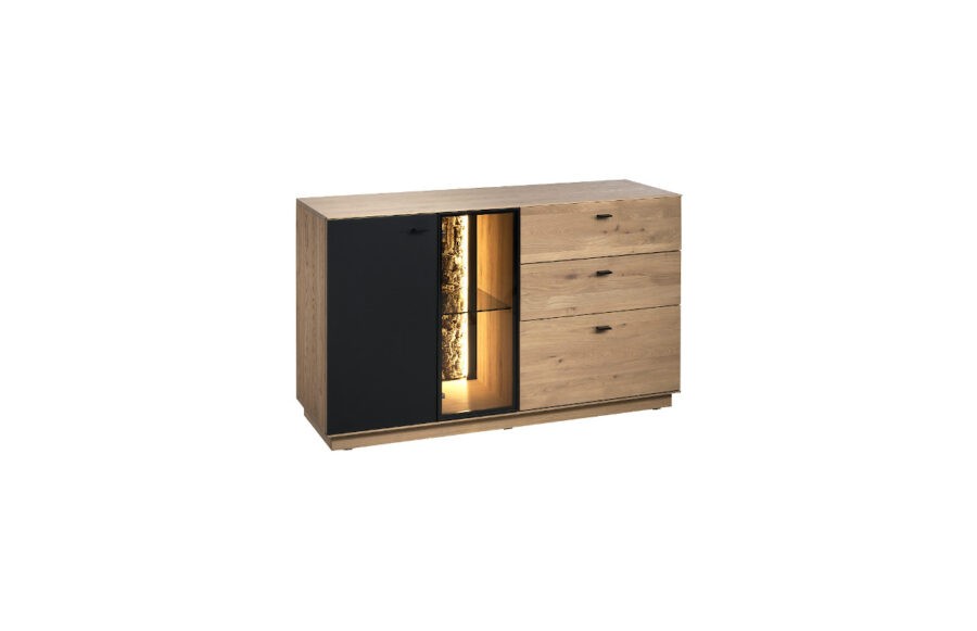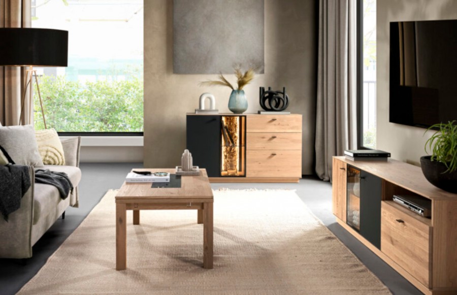 Kolekcja CORENA - zachwyca swoją prostotą, elegancją i niepowtarzalnym stylem. Proste bryły o idealnych proporcjach, w połączeniu z delikatnym dekorem w postaci podświetlanej kory LED, tworzą efekt, który przyciąga spojrzenia i nadaje wnętrzu wyjątkowego charakteru. Wykorzystanie litego drewna dębowego, szkła oraz aluminiowych ramek nadaje kolekcji niezwykłej elegancji i trwałości. Kolekcja CORENO oferuje szeroki wybór mebli, które doskonale pasują do każdego pomieszczenia mieszkalnego. Proste formy brył z masywu dębowego oraz naturalnej okleiny dębowej, pokrytej lakierem z woskiem, tworzą harmonijną całość, która wprowadzi do Twojego wnętrza przyjemny klimat. Postaw na solidne wykonanie oraz najwyższą jakość materiałów i urządź swoje mieszkanie kolekcją CORENO. Precyzyjne wykonanie oraz dopasowane detale sprawiają, że kolekcja CORENO staje się klasyką wśród mebli, tworząc niezapomniane wnętrza, które zachwycą każdego.