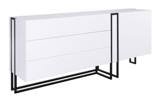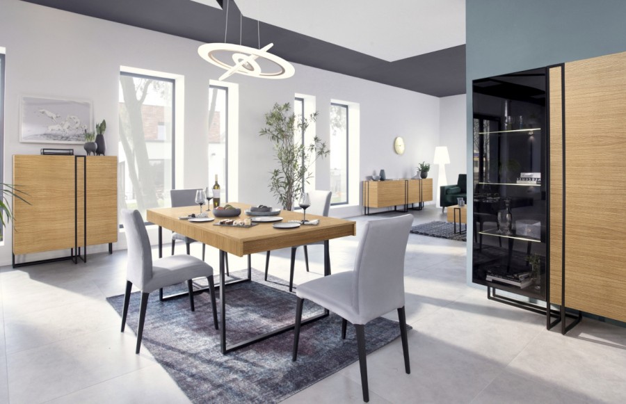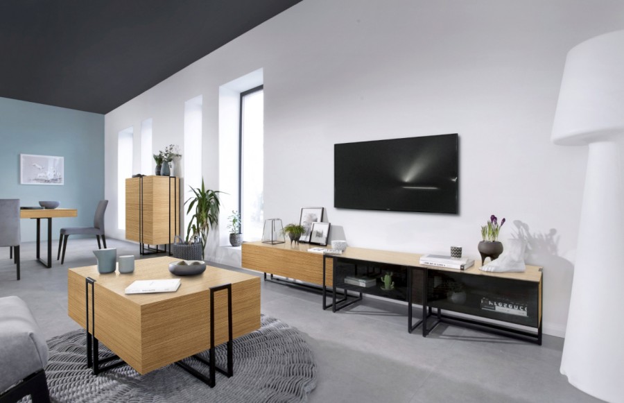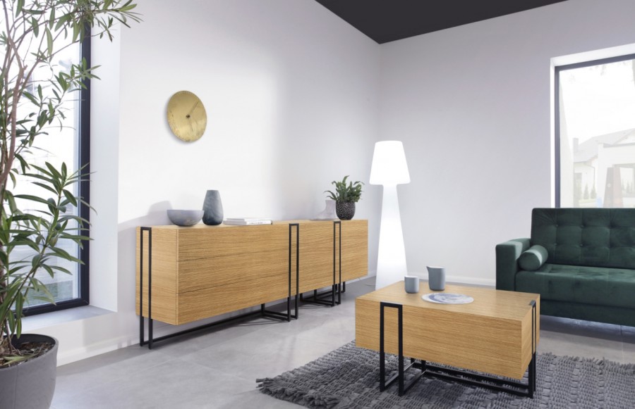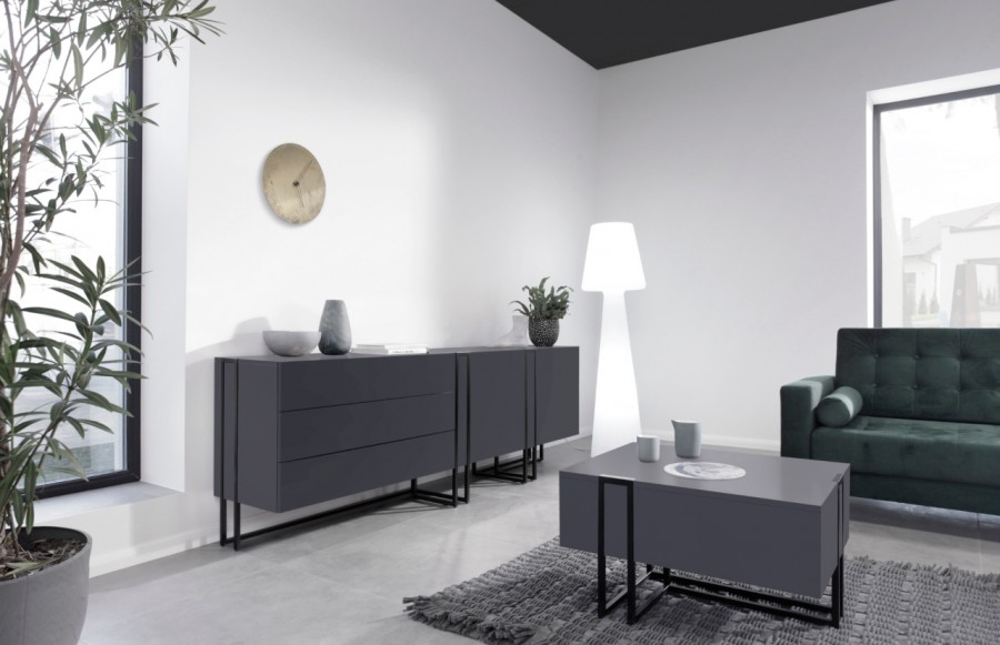 Kolekcja RAY - to kolekcja wyjątkowych mebli, stworzona z myślą o miłośnikach wnętrz loftowych oraz minimalistycznych. Jego prosta forma idealnie wpisuje się w nowoczesne trendy meblarskie. Czarny, metalowy stelaż podkreśla industrialny charakter, nadając meblom wyjątkowego charmu. Kolekcja Ray oferuje trzy odcienie do wyboru - naturalny dąb, błyszczący biały lakier oraz matowy grafit. Szklane fronty wykonane ze specjalnego szkła typu grafit antisol, osadzone w eleganckim, czarnym aluminiowym stelażu, dodają kolekcji niepowtarzalnej elegancji. Meble Ray to wybór doskonały dla osób pragnących stworzyć wnętrze sprzyjające harmonii i wyciszeniu. Linia Ray pozwala na stworzenie przestronnego i spokojnego otoczenia. W skład kolekcji wchodzą różnorodne elementy, takie jak komody, witryny, bufety, stół oraz stolik kawowy. Każda z tych brył stanowi istotny element układanki, tworząc wymarzoną aranżację wnętrza. Detale oraz materiały użyte w produkcji mebli Ray, wraz z dbałością o najwyższą jakość wykończenia, podkreślają ich ekskluzywny charakter. Ray to przykład doskonały na to, jak połączyć niekonwencjonalny design z funkcjonalnością na najwyższym poziomie. Odkryj piękno kolekcji Ray i nadaj swojemu wnętrzu wyjątkowy, luksusowy akcent.
