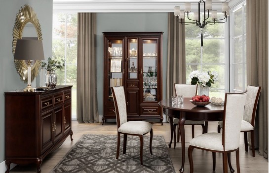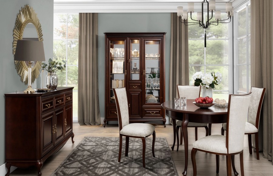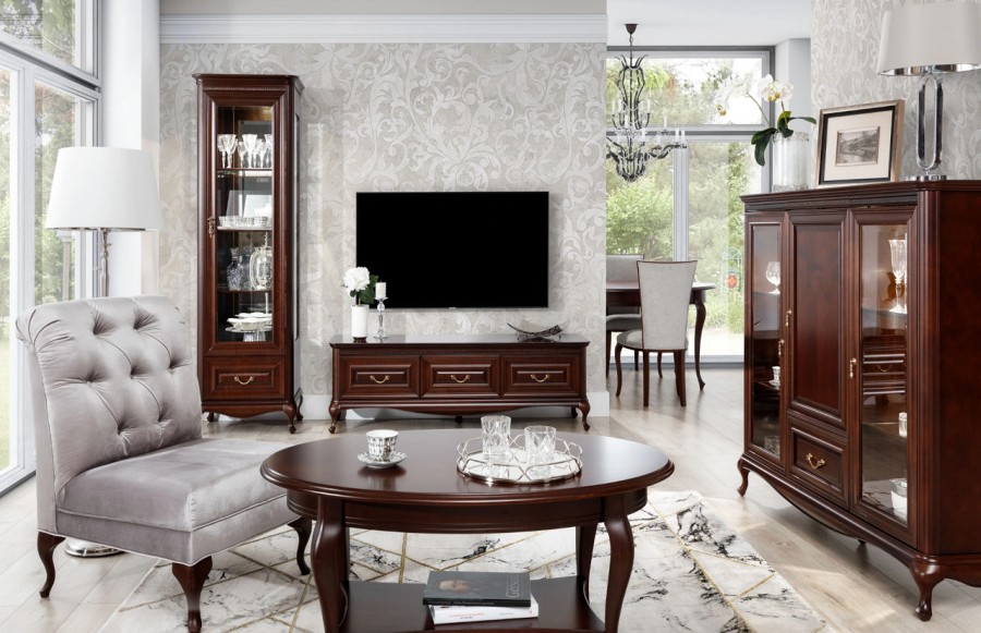 Kolekcja VERONA - to doskonała propozycja dla pasjonatów klasycznego stylu, którzy pragną wyróżnić się zarówno formą, jak i kolorem. Meble VERONA stanowią wyrafinowany zbiór przepięknie zdobionych i elegancko wykończonych brył. Rozległa oferta różnorodnych elementów umożliwi Ci stworzenie aranżacji dopasowanej do każdego pomieszczenia, niezależnie od jego wielkości. Meble VERONA to nie tylko wyrafinowana forma, ale także niezawodna funkcjonalność i trwałość. Kolekcja VERONA zachwyca przepięknie zdobionymi frontami, delikatnymi uchwytami oraz subtelnie giętymi nogami, które dodają lekkości oraz elegancji. W asortymencie znajdziesz różnorodne komody, witryny, szafki pod telewizor, barki oraz stoliki kawowe. Wybór kolorów jest nieograniczony – od szlachetnego brązu, poprzez elegancki krem, aż po ponadczasową biel. Standardowym wyposażeniem kolekcji jest oświetlenie, które dodaje niesamowitego uroku i atmosfery Twoim meblom. VERONA to kolekcja dla osób, które cenią ponadczasową elegancję i klasyczny styl.