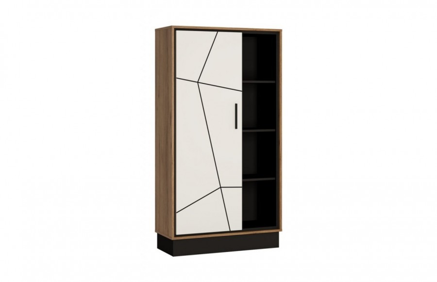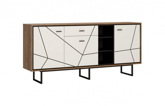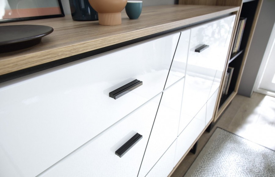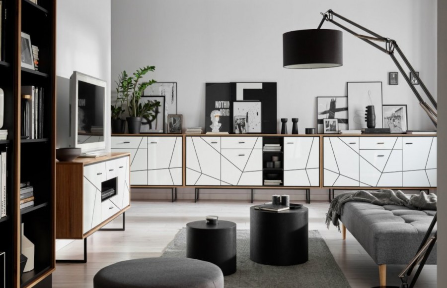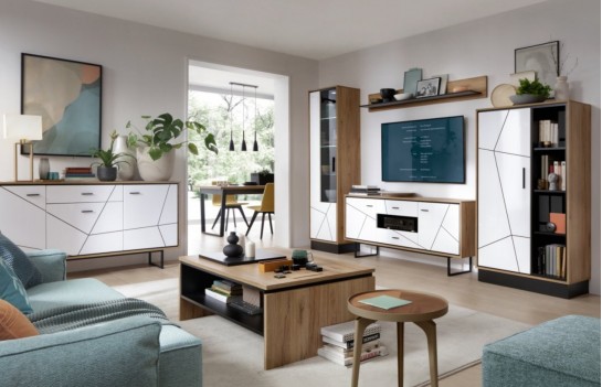 Kolekcja BROLO - to system nietuzinkowy, obdarzony nowoczesną formą i funkcjonalnością. To także zaproszenie do świata przytulnej oryginalności. Doskonale wpisuje się w różnorodne aranżacje wnętrz, pozwalając na tworzenie harmonijnych zestawień kolorystycznych. BROLO to esencja nowoczesności dzięki zastosowaniu innowacyjnych materiałów. Fronty mebli z kolekcji to prawdziwa innowacja. Płyta MDF, barwiona w masie, została pokryta błyszczącą białą folią, a następnie poddana frezowaniu, tworząc geometryczne wzory. Efekt ten odkrywa czarne wnętrze płyty, co nadaje kolekcji wyjątkowego charakteru. Drewniany dekor korpusu ociepla całość, tworząc niepowtarzalny design. Komoda na modnym, metalowym stelażu, stół z synchroniczną prowadnicą oraz dodatkowe oświetlenie LED to tylko niektóre elementy kolekcji. One nie tylko dodadzą elegancji i szyku Twojemu wnętrzu, ale również wprowadzą powiew nowoczesności do każdego salonu. W skład kolekcji BROLO wchodzą: witryny, komody, regały, meble RTV, ławy, stół oraz szafa. To kompletny zestaw, który pozwoli Ci stworzyć unikatowe wnętrze.
