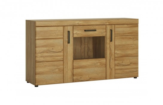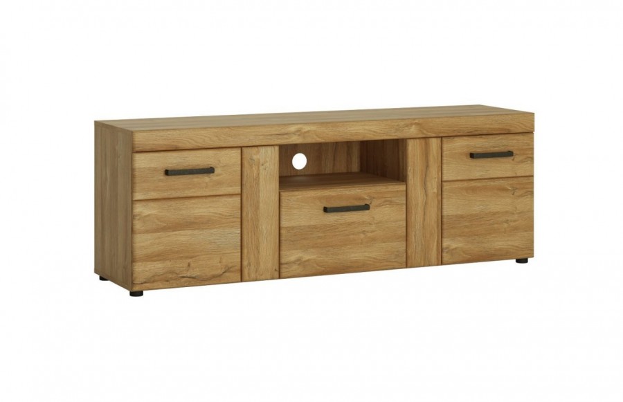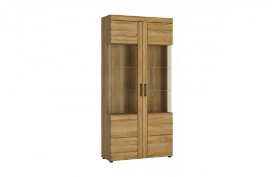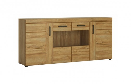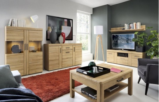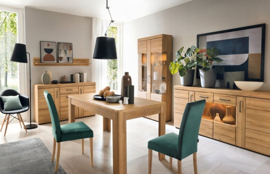 Kolekcja CORTINA - to wyjątkowy hołd oddany ponadczasowej estetyce drewna. Metalowe, starannie postarzałe uchwyty oraz solidna konstrukcja frontów nawiązują do klasycznych mebli drewnianych. Kolekcja CORTINA zachwyca stonowaną kolorystyką jasnego, naturalnego drewna dębu "grandson". Ten odcień doskonale wpasowuje się w różnorodne wnętrza, bez względu na metraż czy barwę ścian. Przeszklone boki witryn, które można dodatkowo podświetlić, przełamują tradycję, nadając solidnym bryłom subtelności oraz delikatności. Przyjemność korzystania z mebli CORTINA podnosi wygodny mechanizm cichego domykania frontów. Seria ta oferuje różnorodne elementy, doskonale dopasowane do wyposażenia salonu, jadalni, pokoju dziennego i przedpokoju. Niektóre z mebli CORTINA znakomicie sprawdzą się również w sypialni, pokoju młodzieżowym lub biurze. Meble CORTINA to wyrafinowany styl, który nada Twojemu wnętrzu wyjątkowy charakter.