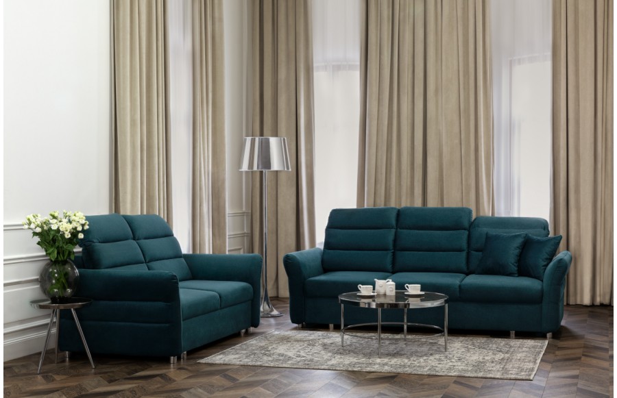 Sofa GRANDERA - to nowoczesny mebel tapicerowany, który zagwarantuje komfort użytkowania na wysokim poziomie. Przeznaczona do wygodnego spędzania czasu. Funkcja spania typu "puma" sprawdzi się w przypadku nieoczekiwanych gości, a staranne wykonanie zadowoli nawet najbardziej wymagających klientów. Szeroka gama kolorów to niewątpliwa zaleta tego modelu, gdyż ułatwia nam wybór wymarzonej tkaniny do własnego wnętrza. Oferujemy tkaniny hydrofobowe oraz łatwo czyszczące, dzięki którym nie musisz martwić się o zabrudzenia. W siedzisku zastosowano sprężyny bonelowe na sprężynach falistych oraz piankę poliuretanową. Mamy do wyboru nóżki z tworzywa (chrom) lub drewniane (możliwość wyboru kolorystyki). Kolekcja Grandera to również narożnik, sofa 2-osobwa oraz fotel.