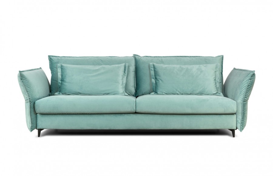 Sofa CARMEN - to wyjątkowa sofa, która emanuje urzekającym stylem. Doskonale łączy w sobie elementy stylu glamour z nowoczesnymi wykończeniami, tworząc niepowtarzalny design. Ten model wyróżnia się oryginalną linią, podkreśloną miękkimi poduchami oraz regulowanymi bokami, co czyni go doskonałym wyborem zarówno do nowoczesnych, jak i klasycznych wnętrz. CARMEN to mebel, który zachwyca fantastyczną stylistyką i precyzyjnie wykonanymi detalami, takimi jak falowana lamówka na podłokietnikach i oparciu. Sofa oferuje miękkie i wygodne siedzisko, które bez trudu pomieści 3 osoby. Siedzisko i oparcie są wypełnione sprężyną i wysokoelastyczną pianką poliuretanową, co zapewnia doskonały komfort wypoczynku. Dodatkowo, siedziska i oparcia doskonale dopasowują się do anatomicznego kształtu ciała, zapewniając wyjątkowy komfort i ergonomię. Sofa CARMEN ma także praktyczną funkcję spania. Dostępna jest w kilku kolorach nóżek i oferuje szeroki wybór kolorów tapicerki, dzięki czemu masz możliwość dostosowania jej do swoich indywidualnych preferencji. CARMEN to nie tylko mebel - to wyraz osobistego stylu i luksusu, który wniesie elegancję do Twojego salonu.