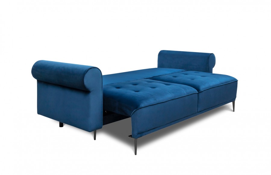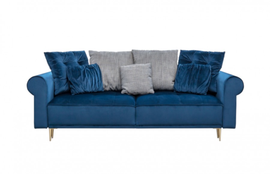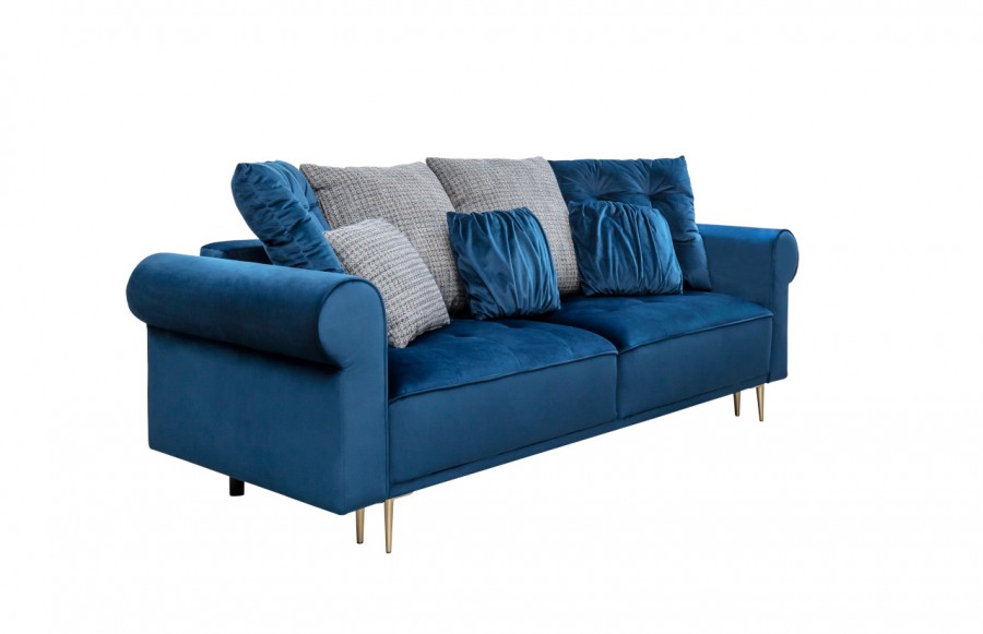 Sofa CLAIR - to mebel, który pozwala na pełną personalizację, dostosowując się do Twoich potrzeb i stylu wnętrza. Dzięki możliwości dowolnej konfiguracji poduszek oparciowych, możesz szybko zmienić wygląd sofy, nadając jej indywidualny charakter. To idealne rozwiązanie zarówno dla nowoczesnych, jak i klasycznych wnętrz. Dodatkowo, opcja wyboru boku oraz dowolne rozmieszczenie poduszek oparciowych pozwala na dostosowanie sofy do nawet najbardziej wymagających przestrzeni. Dla tych, którzy lubią odważniejsze rozwiązania, dostępna jest opcja łączenia tkanin na poduszkach oparciowych, co nadaje meblowi unikalny charakter. Sofa CLAIR to nie tylko estetyczny wygląd, ale także funkcjonalność. Posiada funkcję spania oraz pojemnik na pościel, co daje Ci dodatkowe miejsce do przechowywania, a Twoim gościom zapewnia wygodne miejsce do spania. Jej piękny kształt, welurowa tapicerka oraz szerokie, zaokrąglone podłokietniki i wysokie oparcie zapewniają najwyższy komfort. Sofa CLAIR to idealne połączenie funkcjonalności i designu.