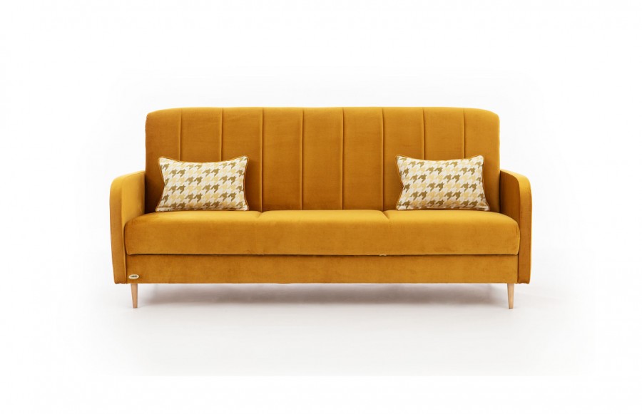 Sofa LORETTO - to niezwykle interesujący mebel, który wyróżnia się nowoczesnym charakterem. Dzięki swojemu nowatorskiemu designowi, wąskiemu, zaokrąglonemu bokowi oraz eleganckim, drewnianym nogom, jest idealnym rozwiązaniem do niewielkich wnętrz. LORETTO to nie tylko atrakcyjny mebel, ale także bardzo funkcjonalny. Wersalka Loretto została wyposażona w typowy mechanizm rozkładania "klik - klak", co sprawia, że łatwo można ją przekształcić w wygodne łóżko. Dodatkowo, posiada praktyczny pojemnik na pościel, co jest nieocenione w przypadku niewielkich mieszkań, gdzie każdy metr kwadratowy ma znaczenie. Bogata oferta tkanin pozwala dopasować odpowiednie obicie do aranżowanego wnętrza. Wersalka Loretto to doskonały wybór dla osób, które poszukują mebla o nowoczesnym designie, który jednocześnie spełnia praktyczne potrzeby.
