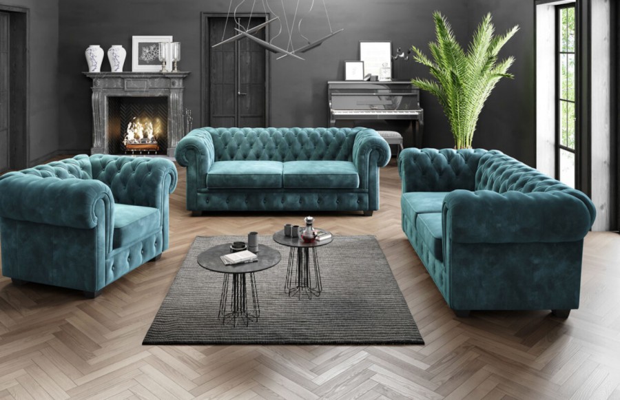 Sofa MANCHESTER - to połączenie klasycznej i niezmiennie eleganckiej stylistyki w duchu chesterfield, wykonanej z najwyższej jakości materiałów i nieustającej dbałości o każdy detal. Wyjątkowo wyprofilowane oparcie gwarantuje niezwykły komfort w trakcie wypoczynku, a gęste pikowania wykończone małymi guzikami nadają sofie ponadczasowego uroku. Niezależnie od tego, czy Twój salon jest przestronny, czy też dysponujesz mniejszą przestrzenią, sofa MANCHESTER doskonale się w nim sprawdzi, stanowiąc główną ozdobę. Jej designerska forma, efektowne pikowania i przeszycia oraz gustowne wykończenie przyciągną uwagę każdego miłośnika wyrafinowanego designu. W pełni wypełnione sprężyną falistą siedzisko zwiększa elastyczność i komfort siedzenia, pozwalając Ci cieszyć się wypoczynkiem na najwyższym poziomie. Wybierz rodzaj i kolor tapicerki spośród bogatej oferty, aby dostosować ją do swojego indywidualnego gustu. Co więcej, sofa MANCHESTER posiada funkcję spania, co sprawia, że jest nie tylko elegancką ozdobą Twojego salonu, ale także praktycznym rozwiązaniem. Odkryj ponadczasową elegancję i niezapomniany komfort w jednym z naszych ekskluzywnych modeli.
