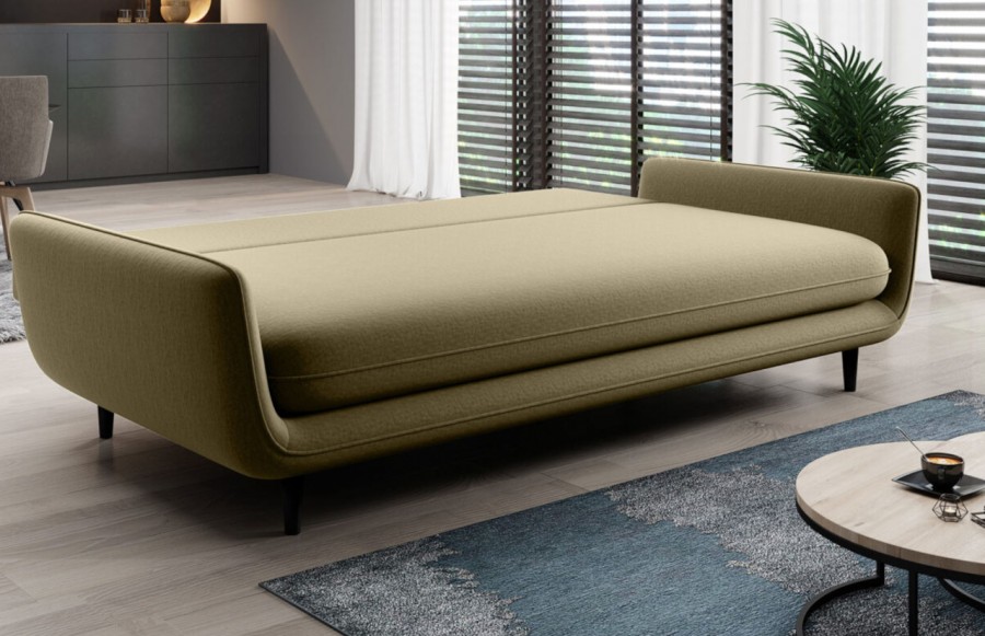 Sofa SOLANO - to wyjątkowy mebel, który przypadnie do gustu osobom ceniącym piękno, wygodę i niebanalny styl. Jej smukłe nóżki nadają jej szykowny i elegancki wygląd, co sprawia, że doskonale komponuje się w salonie, pokoju gościnnym czy młodzieżowym. To, co wyróżnia sofę SOLANO, to nie tylko jej estetyka, ale przede wszystkim wyjątkowy komfort. Wyprofilowane oparcia i siedziska, wypełnione sprężyną falistą i pianką, gwarantują najwyższy poziom wygody podczas siedzenia. Dodatkowo, funkcja spania pozwala w szybki i łatwy sposób przekształcić sofę w wygodne łóżko, natomiast praktyczny pojemnik ukryty pod siedziskiem pomieści dodatkowy komplet pościeli czy poduszki. Sofa SOLANO doskonale sprawdzi się także w mniejszych pomieszczeniach, gdzie komfortowy wypoczynek i sen idą w parze. Dzięki mechanizmowi DL, rozkładanie sofy jest szybkie i bezproblemowe. Ponadto, tapicerowany tył umożliwia swobodne umieszczenie sofy w dowolnym miejscu, nawet na środku pomieszczenia. Wybierz SOLANO i ciesz się harmonią, komfortem i funkcjonalnością w jednym meblu.