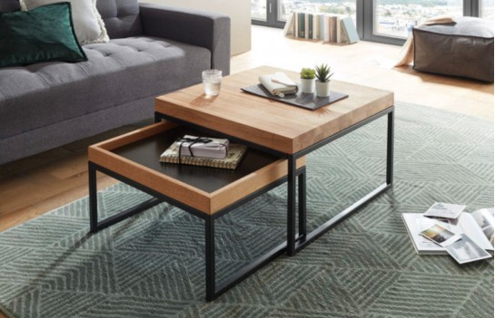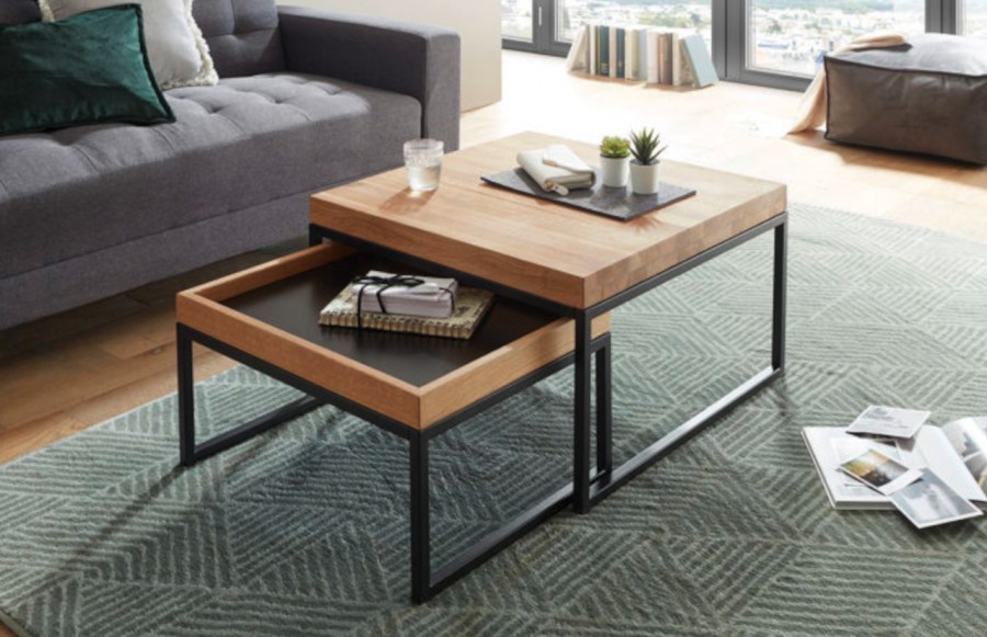 Ławy LUBAO - idealnie komponują się w salonie obok kanapy lub foteli. Ich inteligentny design pozwala na przechowywanie mniejszego stolika pod większym, co oszczędza miejsce. Stoliki kawowe wykonane są z drewna dębowego, zabezpieczonego olejem, co podkreśla ich naturalny urok. Metalowa podstawa w kolorze czarnym doskonale współgra z drewnianym blatem, tworząc stylowy i elegancki efekt.