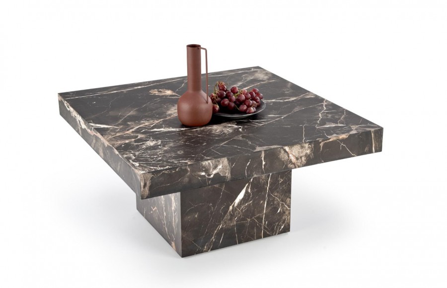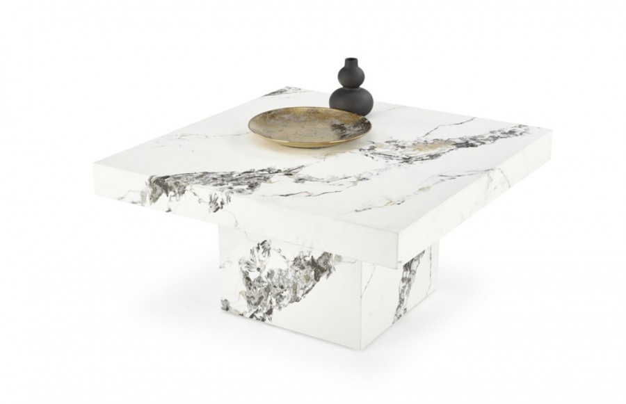 Ława MONOLIT - nowoczesna ława w kolorze marmur - biały lub czarny. Pięknie prezentuje się w eleganckich oraz designerskich wnętrzach. Stolik kawowy w całości wykonany jest z płyty MDF okleinowanej. Kwadratowy blat stolika osadzony jest na masywnej podstawie, tworząc stabilny mebel pasujący do wnętrz w stylu glamour. Ława MONOLIT będzie idealnym dopełnieniem wystroju salonu. Ustawiona przy sofie, fotelu lub narożniku pozwoli stworzyć komfortowy kącik wypoczynkowy, a blat będzie służył do odłożenia książki, pilota od tv oraz filiżanki z herbatą lub kawą.