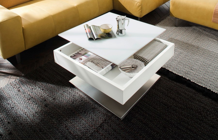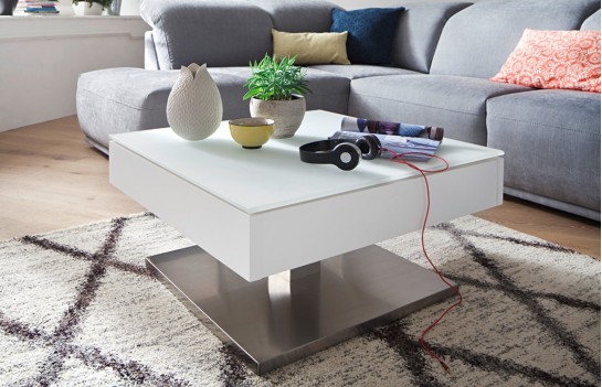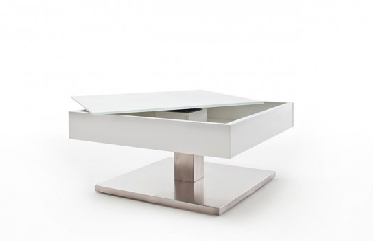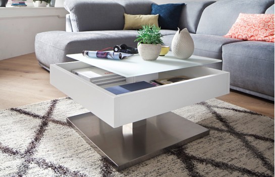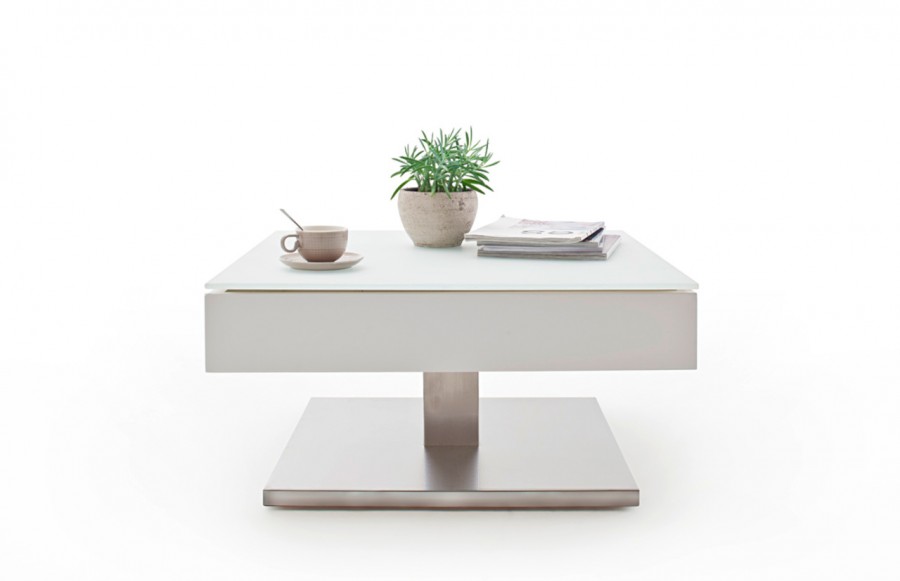 Ława MARIKO - elegancka ława w stylu nowoczesnym. Stolik Mariko wyposażony jest w obrotowy i podnoszony blat, dzięki któremu uzyskujemy schowek na niezbędne przedmioty. Stanowi idealny element uzupełnienia przestrzeni salonowych. Ława Mariko z jednej strony urzeka prostotą, z drugiej zaś nowoczesną stylistyką. Wysoka jakość materiałów oraz dbałość o każdy szczegół gwarantuje odporność na uszkodzenia i trwałość.