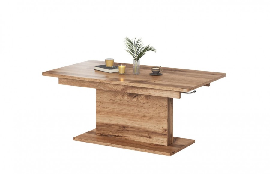 Ławostół BUSETTI - to idealne połączenie nowoczesnego designu i funkcjonalności. Jej innowacyjny projekt przyciąga uwagę, oferując stabilną nogę z siłownikami umożliwiającymi regulację wysokości blatu. Rozkładana konstrukcja zapewnia dodatkową powierzchnię roboczą, idealną do narożników lub kanap. Wykonana z materiałów najwyższej jakości, z eleganckim wykończeniem w kolorze dębu wotan, ława Busetti doskonale komponuje się z różnymi stylami wnętrzarskimi. To funkcjonalny mebel, który może zastąpić stół, dodając nowoczesnego charakteru każdemu salonowi czy pokojowi dziennemu.