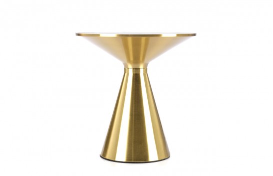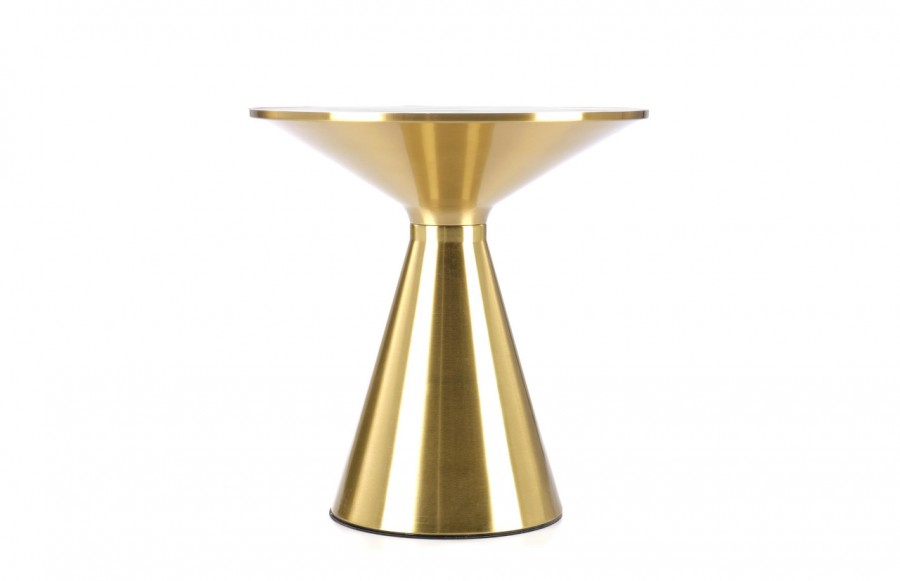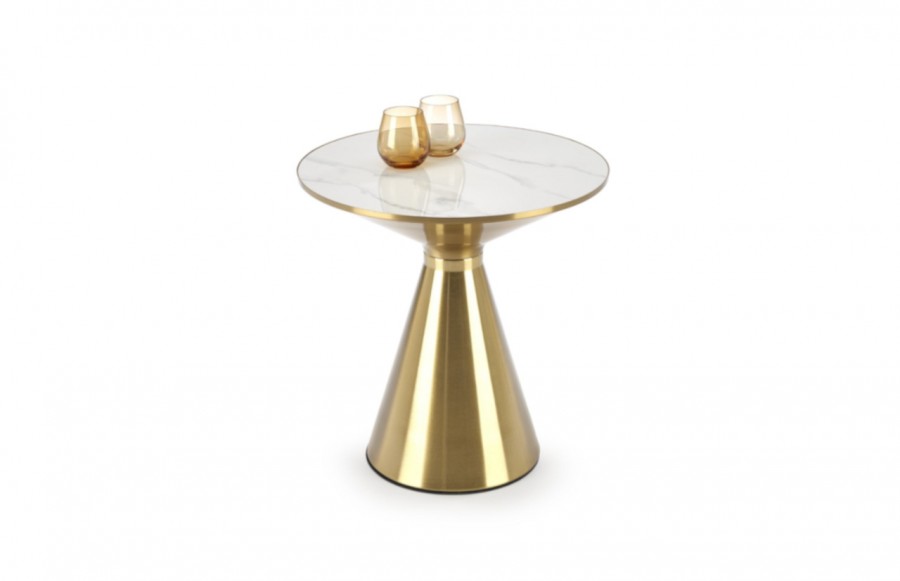 Ława TRIBECA - to połączenie glamour i nowoczesności, idealne do eleganckiego wnętrza. Jej okrągły, ceramiczny blat imitujący biały marmur nadaje luksusowego wyglądu. Złota podstawa, wykonana ze stali nierdzewnej w kształcie stożka dodaje lekkości i elegancji. Idealna dla tych, którzy szukają mebla o wyjątkowym charakterze.
