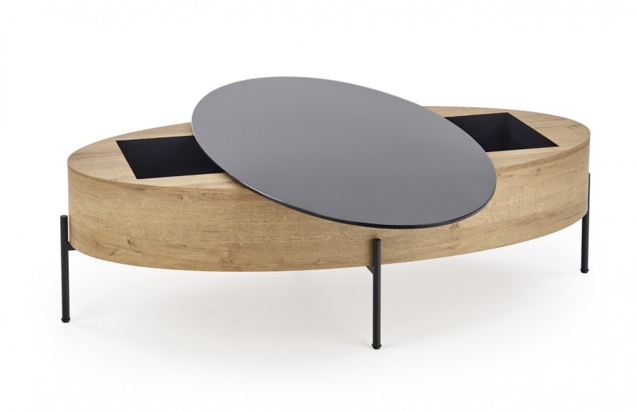 Ława ZENGA - to idealne uzupełnienie dla wnętrz nowoczesnych i industrialnych. Solidne wykonanie zapewnia długotrwałą użyteczność. Stolik ZENGA wykonany został ze szkła i okleinowanej płyty MDF, połączonej z czarnym stelażem ze stali malowanej proszkowo. Jest to mebel dla tych, którzy poszukują codziennej estetyki nowoczesności w praktycznym wydaniu. Dodatkowy schowek pod blatem to doskonałe rozwiązanie dla przechowywania ulubionych książek czy magazynów.