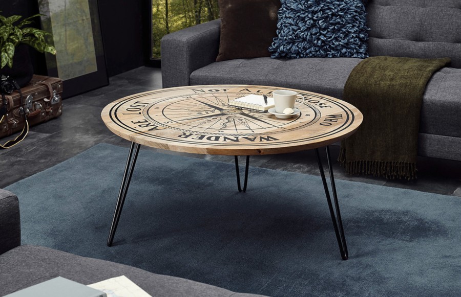 Ława NEVIS - to marzenie podróżników. Jego okrągły blat z drewna mango zdobi motyw kompasu, przenoszący myśli w odległe podróże. Solidny stelaż z żelaza gwarantuje trwałość mebla. Wyjątkowy design i połączenie drewna z metalem wpisują się w nowoczesne trendy. Idealnie pasuje do każdego pomieszczenia, dodając uroku zarówno salonowi, jak i sypialni.