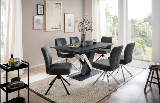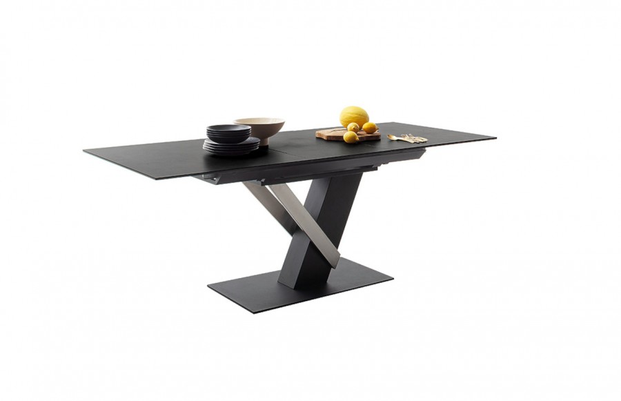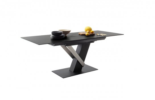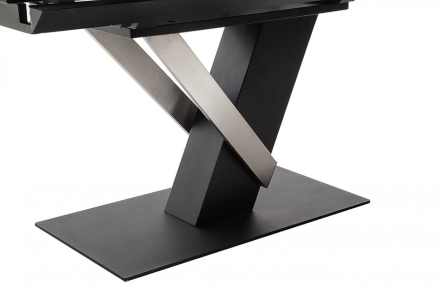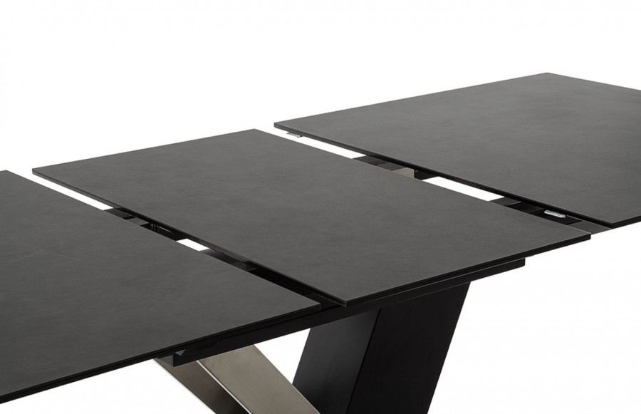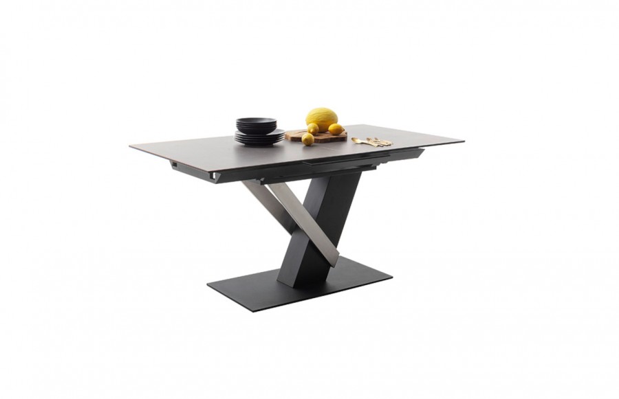 Stół MASSARO - elegancki stół na nowoczesnej podstawie. Występuje w dwóch wariantach kolorystycznych. Blat stołu Massaro wykonany jest ze szkła połączonego z ceramiką w następujących kolorach: jasnoszary i antracyt. Natomiast stelaż to połączenie stali szlachetnej szczotkowanej z MDF-em. To absolutnie nowoczesna propozycja stołu do salonu i jadalni. Niezwykle elegancka bryła łączy w sobie ciekawy design z funkcjonalnym rozkładaniem blatu. Stół MASSARO to doskonałe rozwiązanie dla osób poszukujących nietuzinkowych mebli.