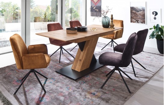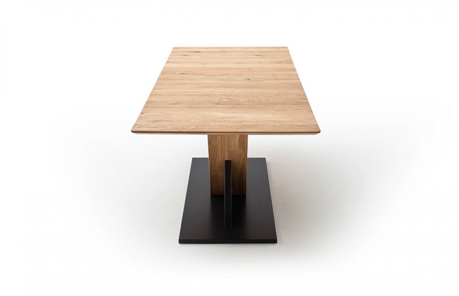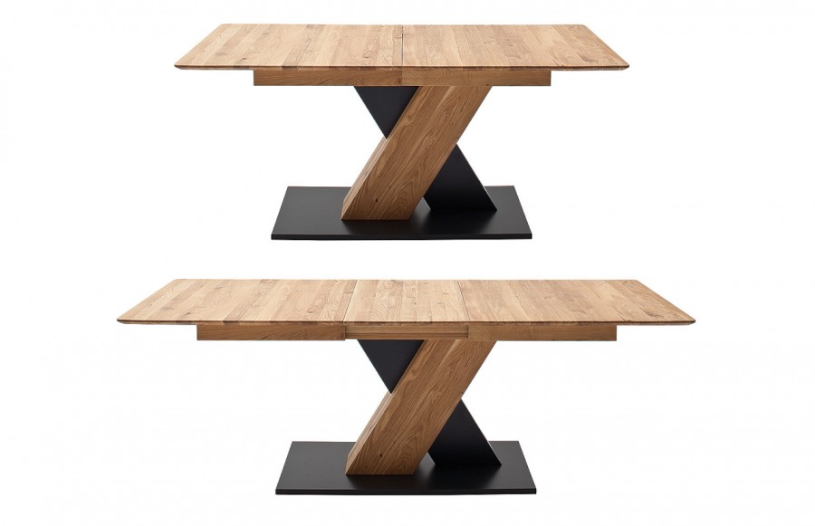 Stół CUBA 1 - drewniany stół na podstawie. To propozycja kierowana do osób ceniących sobie oryginalne oraz nowoczesne rozwiązania. Stół CUBA przyciąga wzrok nawet najbardziej wymagających klientów. Blat to dąb dziki olejowany o grubości 2,5 cm, natomiast stelaż wykonany jest z dębu dzikiego oraz solidnej płyty MDF w kolorze lakier czarno-szary mat. Produkt dostępny jest w dwóch wymiarach: 140(190)x90x77 oraz 180(230)x90x77.