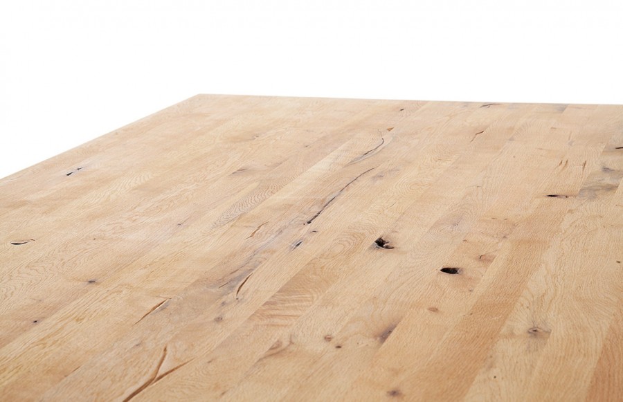 Stół AMSTERDAM - drewniany stół na metalowej podstawie. To propozycja kierowana szczególnie do osób ceniących oryginalne oraz nowoczesne rozwiązania. Produkt przyciąga wzrok nawet najbardziej wymagających klientów. Blat to dąb dziki ze spękaniami, sękami i frezowaniami, olejowany o grubości 5 cm z pogrubiaczem. Natomiast stelaż to metal w kolorze lakier antracyt mat oraz drewno dębowe olejowane. Takie połączenie powoduje, że mebel charakteryzuje się niezwykłą trwałością i odpornością na uszkodzenia. Stół Amsterdam występuje w wymiarze 220x100x77.