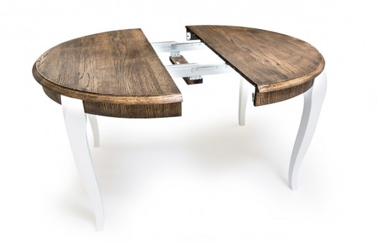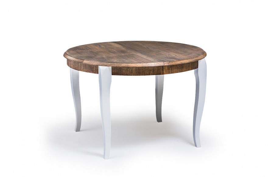 Stół MAXIM - okrągły stół do jadalni. Występuje w różnych rozmiarach oraz wariantach kolorystycznych. Blat stołu wykonany jest w okleinie naturalnej, natomiast nogi to lite drewno dębowe. Istnieje możliwość wybarwienia stołu w innym kolorze niż prezentowany na zdjęciu. Stół Maxim to mebel dla osób lubiących trwałość i nieprzemijające piękno litego drewna. Dzięki zastosowaniu odpowiedniej technologii lakierowania i dobraniu wysokiej jakości materiałów wykończeniowych, jest odporny na działanie alkoholu oraz wysokiej temperatury.
