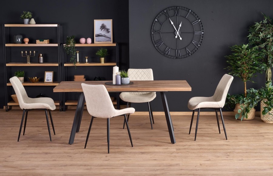 Stół BERLIN - tradycyjny stół w stylu loftowym. Blat wykonany jest z MDF-u okleinowanego, natomiast nogi to stal malowana proszkowo w kolorze czarnym. Podstawa jest prosta i nadaje lekkości, natomiast blat w kolorze orzech miodowy ociepla i ożywia całokształt. Produkt zachwyca prostotą i minimalistyczną stylistyką. Stół Berlin to zgrabny oraz nowoczesny mebel o charakterze industrialnym. Doskonale sprawdzi się w salonie i jadalni.