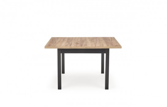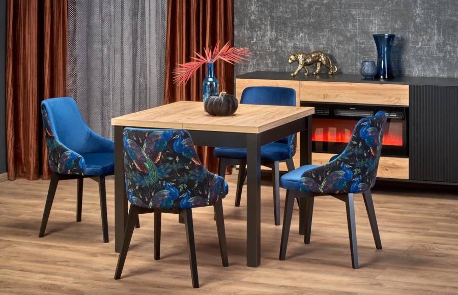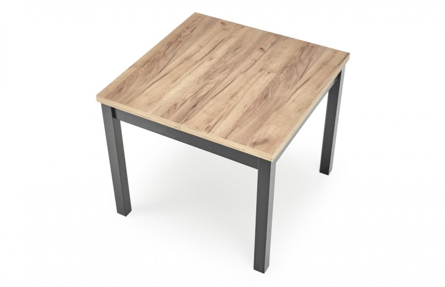 Stół TIAGO - to wyjątkowy mebel o nowoczesnym designie, idealny do różnorodnych wnętrz. Jego podstawa składa się z czarnej ramy i czterech prostych nóg. Gruby blat w imitacji dębu craft kontrastuje pięknie z czarną ramą i nogami. TIAGO ma funkcję rozkładania, co pozwala dostosować jego rozmiar do potrzeb. Ten wszechstronny stół doskonale pasuje zarówno do nowoczesnych, skandynawskich, jak i tradycyjnych wnętrz. Może znaleźć swoje miejsce w kuchni, jadalni, salonie, a także w przestrzeniach komercyjnych, takich jak restauracje czy kawiarnie. To połączenie funkcjonalności i estetyki, które zadowoli nawet najbardziej wymagających użytkowników.