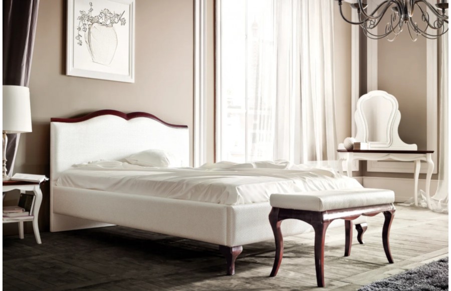 Łóżko MILANO - klasyczne łóżko na nóżkach w stylu gamour. Występuje w różnych konfiguracjach. Każda z nich idealnie dopełni aranżację sypialni tworząc piękną przestrzeń widokową. Łóżko zaprojektowano z myślą o klientach, którzy cenią sobie nowoczesną elegancję oraz ponadczasowy klasyczny styl. Charakterystycznym elementem bryły jest delikatna linia mebla i oryginalne zdobienia. Łóżko oferowane jest w trzech rozmiarach: 160, 180 i 200cm. W opcji dodatkowej istnieje możliwość zastosowania V-podnośnika z pojemnikiem na pościel do łóżek o szerokości: 160 i 180.
