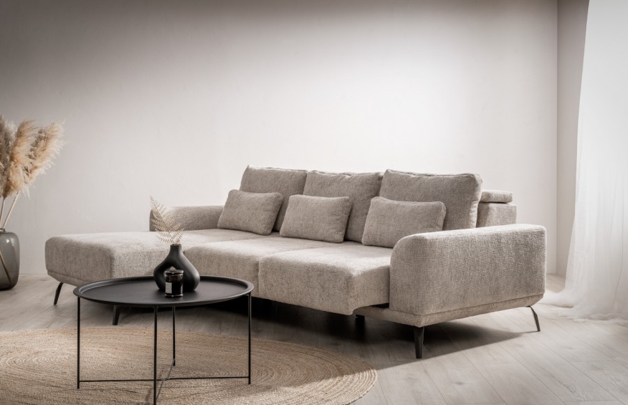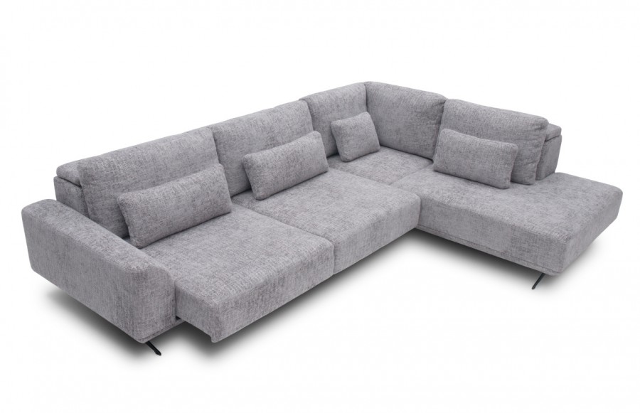 Narożnik MISTY - nowoczesny, wielomodułowy narożnik z innowacyjnymi rozwiązaniami - elektrycznie wysuwane siedzisko i podnoszone oparcie zapewniają niesamowicie komfortowe użytkowanie mebla. Narożnik Misty prezentuje ciekawy design i funkcjonalność. Moduły, z których składa się kolekcja pozwalają nam na stworzenie dowolnych konfiguracji według własnych potrzeb. Wypełnienie pianką wysoko elastyczną zapewnia długą żywotność mebla. Kolekcja dostępna jest w wielu tkaninach dostępnych w salonie.