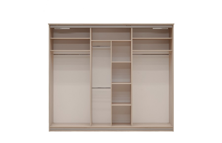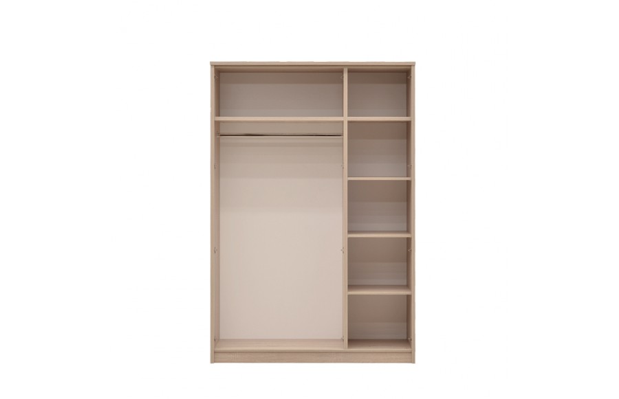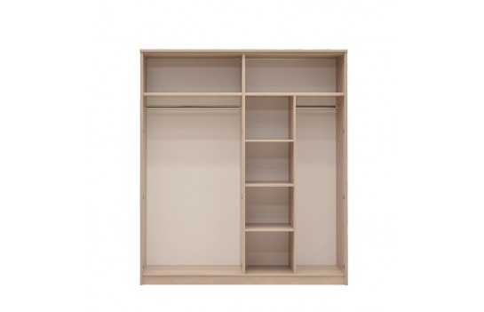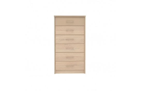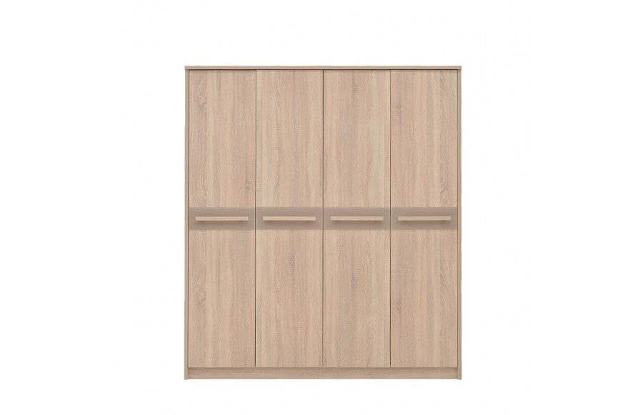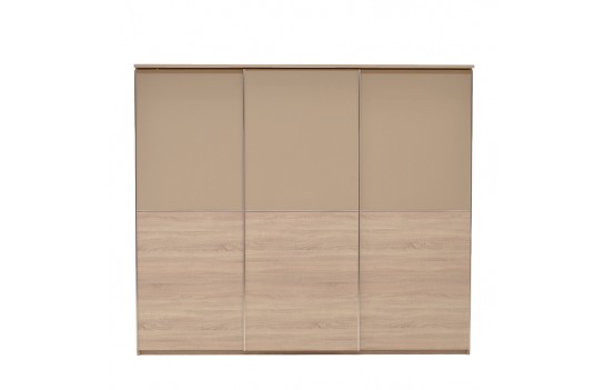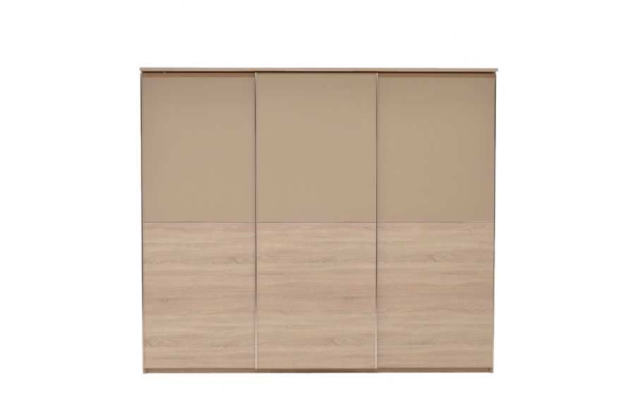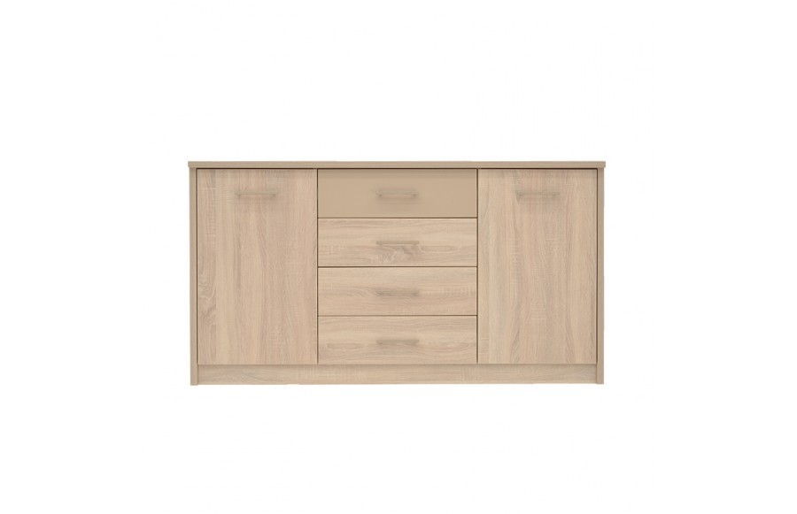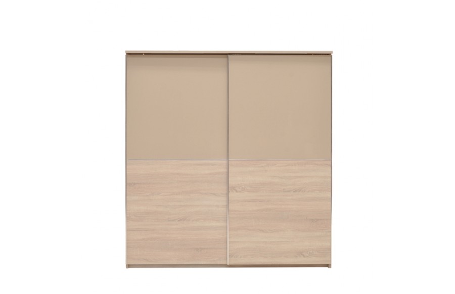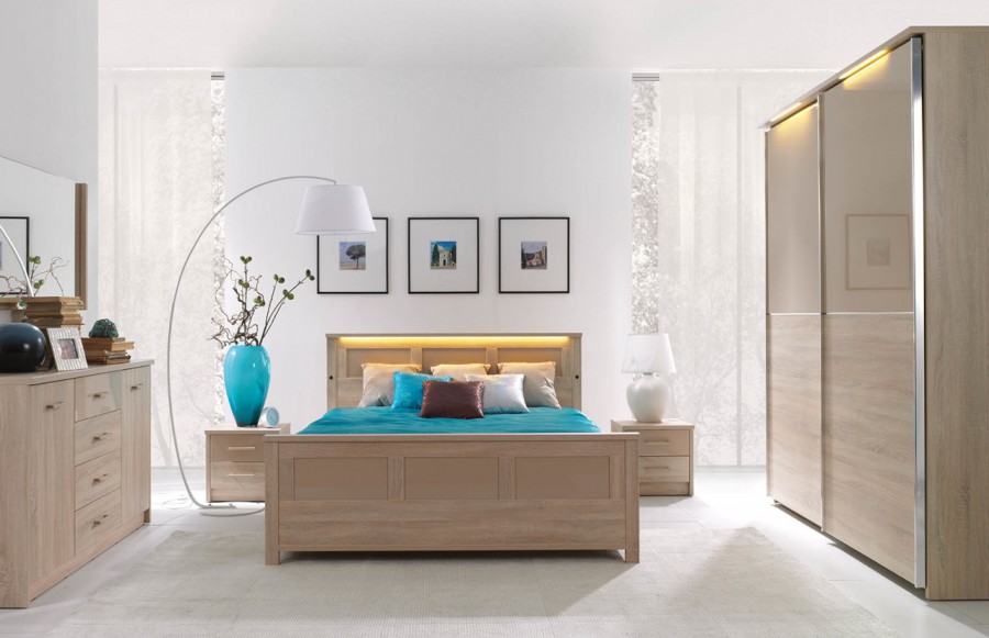 Sypialnia CREMONA - przeniesie Twoją sypialnię na nowy poziom elegancji i stylu. Wykonana z płyty laminowanej w kolorze jasnego dębu Sonoma i błyszczącej płyty w odcieniu cappuccino, sypialnia emanuje spokojem i harmonią, tworząc łagodny nastrój. Nowoczesne rozwiązania, takie jak elementy ze błyszczącej płyty oraz wbudowane światła LED w wezgłowiu łóżka i przy górnej krawędzi szafy, sprawiają, że pomieszczenie wydaje się większe i jaśniejsze. Prosta i subtelna konstrukcja łóżka o nowoczesnym designie, z wysokim zagłówkiem i podświetleniem LED, podwyższonym zanóżkiem oraz pojemnikiem na pościel, spełni oczekiwania nawet najbardziej wymagających koneserów. Doskonale komponuje się z dużą, pakowną szafą z przesuwanymi drzwiami i podświetlonymi frontami oraz praktyczną komodą. Jeśli dysponujesz przestronnym wnętrzem, kolekcja CREMONA oferuje także dodatkowe elementy, takie jak witryna, regał i półki na ścianę, duże lub małe lustro oraz stolik RTV i stolik kawowy, które uzupełnią aranżację sypialni. Sypialnia CREMONA to nie tylko efektowna, ale i wyjątkowo komfortowa przestrzeń. Idealnie dopasowane meble pozwolą Ci cieszyć się wszystkim, co najlepsze w komfortowym wnętrzu sypialni, podkreślając jednocześnie jej niezwykły urok i styl.