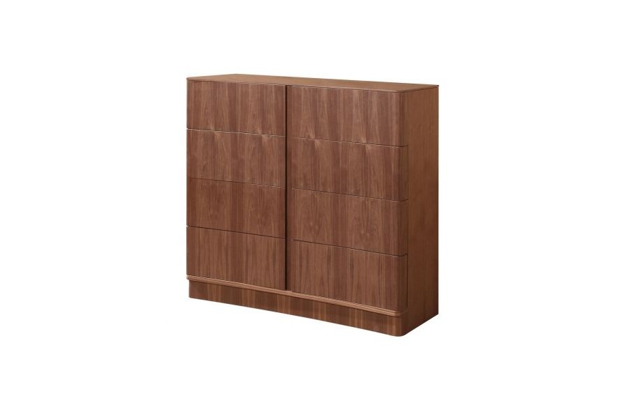 Sypialnia OVO - mamy tutaj połączenie wyjątkowo zaprojektowanej formy z doskonałą funkcjonalnością. Wyrazisty, lekko zaoblony kształt mebli inspiruje do tworzenia unikalnych, osobistych wnętrz. Elementy tej kolekcji wyróżniają się precyzyjnie wykonanymi nawet najmniejszymi detalami, które przełamują konwencjonalną nowoczesność. Zapomnij o sztywnych kształtach - zaokrąglone narożniki oraz wklęsłe drzwiczki dodają subtelnej elegancji, a charakterystyczne linie odcięcia w dolnych partiach witryn sugerują obecność funkcjonalnych szuflad. W kolekcji OVO dostępne są meble w szerokiej gamie kolorystycznej, zarówno w matowych lakierach, jak i w okleinie orzecha amerykańskiego. Szklane blaty kolekcji harmonijnie wpasowują się w wklęsłe fronty, tworząc spójną całość. Różnorodność brył dostępnych w kolekcji OVO umożliwia tworzenie kompleksowych aranżacji w różnych pomieszczeniach. Znajdziesz tu idealne meble do salonu, pokoju dziennego, jadalni oraz sypialni. Kolekcja sypialni oferuje szeroki wybór elementów, takich jak komody, szafa, stoliki nocne oraz designerskie łóżko dostępne w trzech szerokościach. Kolekcja OVO to połączenie nowoczesności, funkcjonalności oraz wyrafinowanego designu. Pozwól tej kolekcji wprowadzić do Twojego wnętrza dawkę elegancji i stylu, które przyciągną uwagę każdego.
